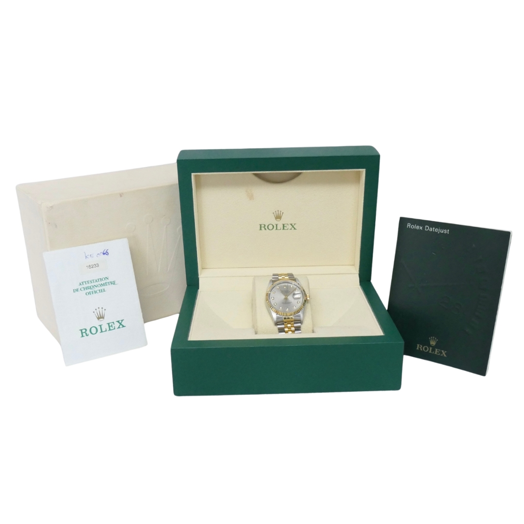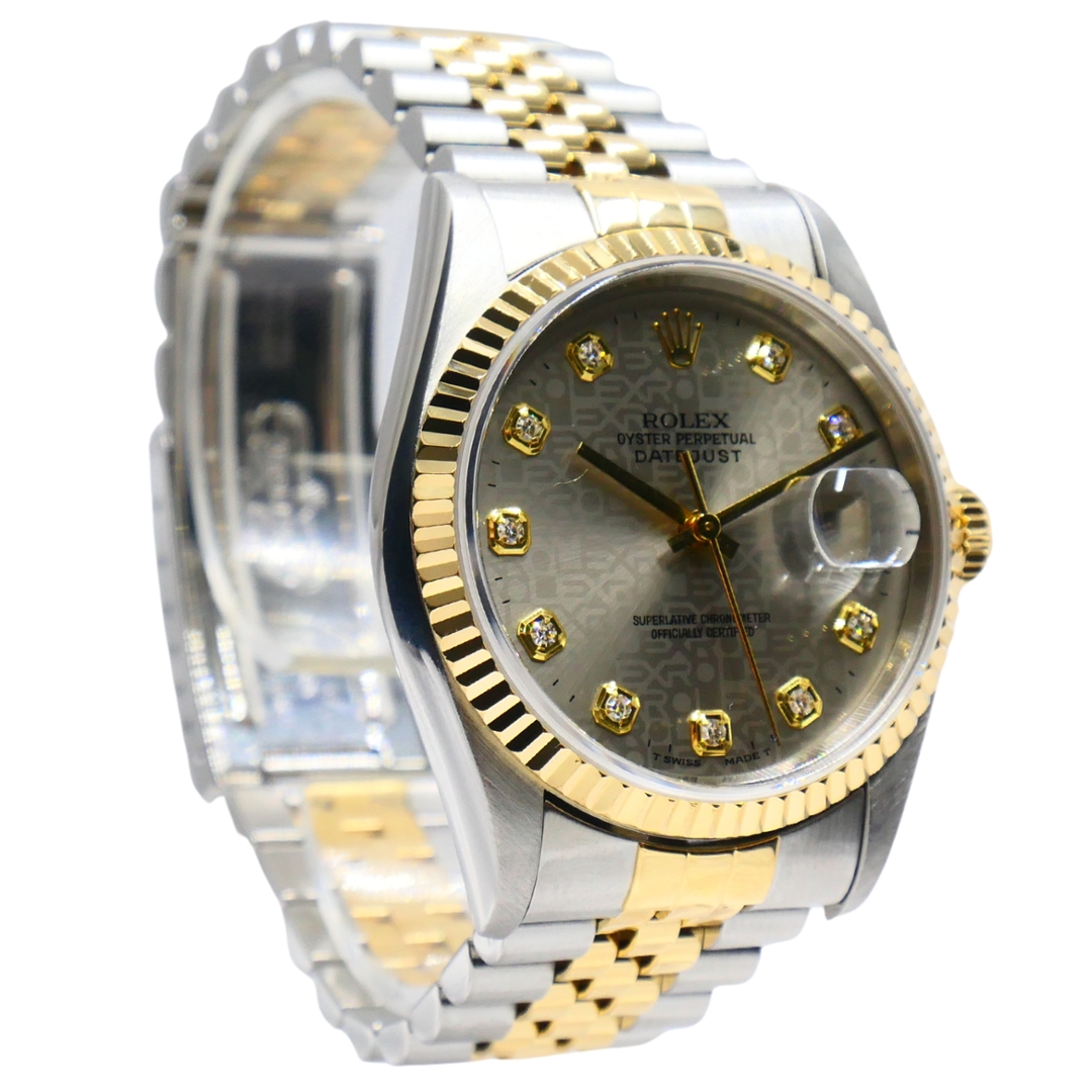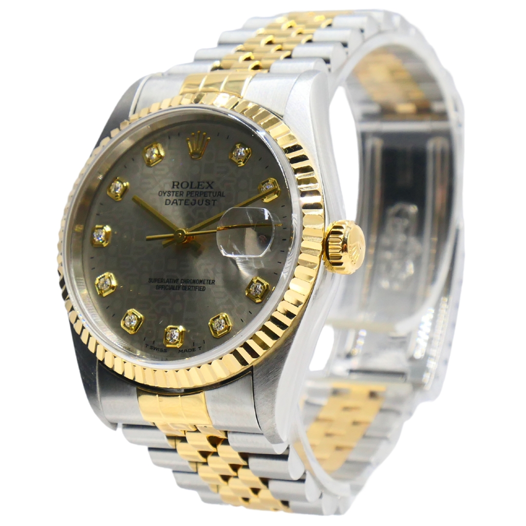 A Bi-Metal Rolex Datejust Watch, Stainless Steel & 18ct Yellow Gold with a Fluted Yellow Gold Bezel on a Grey Jubilee Dial with Original Rolex Diamond Numerals