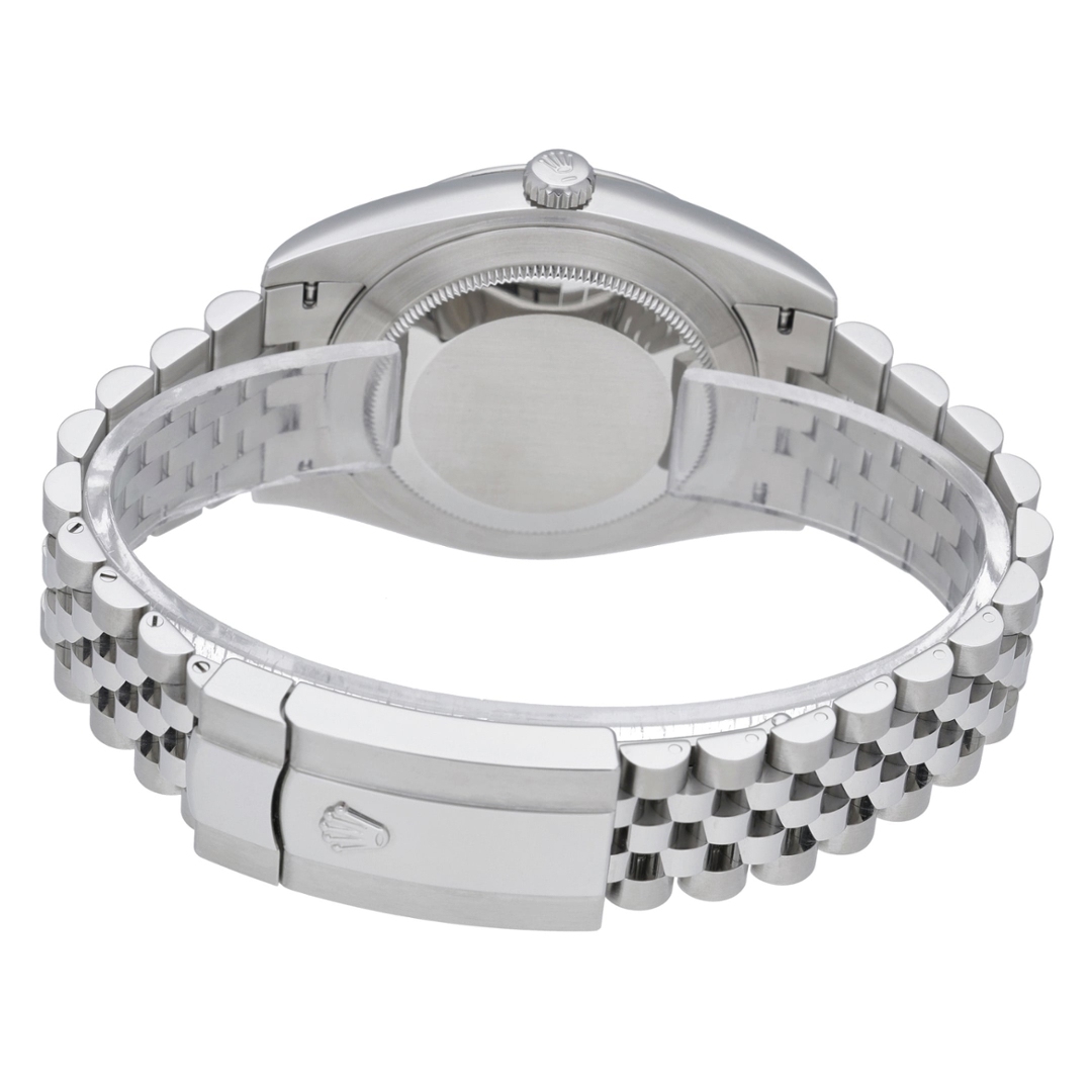 The blue dial is beautifully adorned with crisp baton hour markers and classic Rolex detailing, including the date aperture at 3 o’clock, magnified by the signature Cyclops lens. Paired with the ever-stylish Jubilee bracelet, the watch provides both comfort and sophistication, secured by the folding Oysterclasp with Easylink extension.