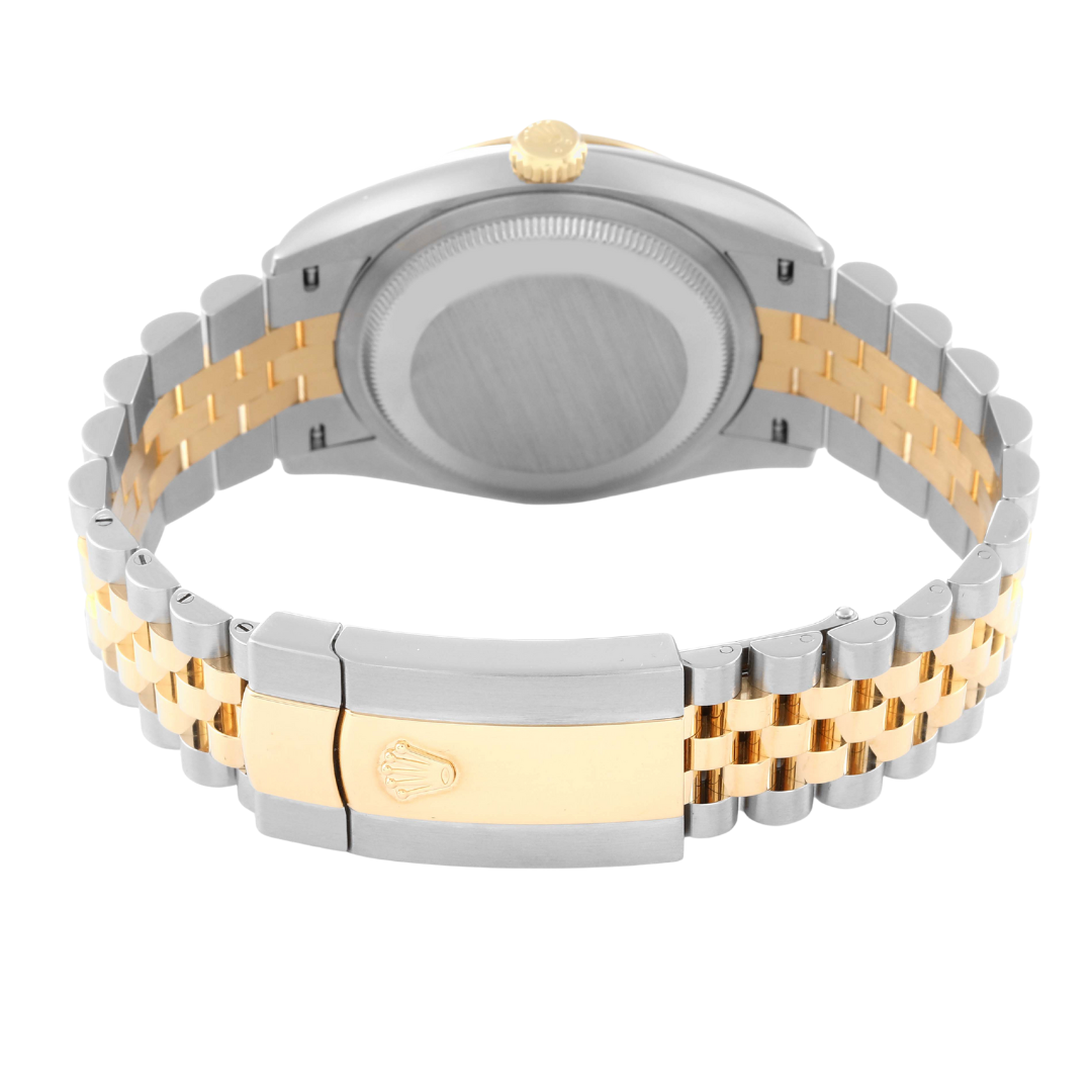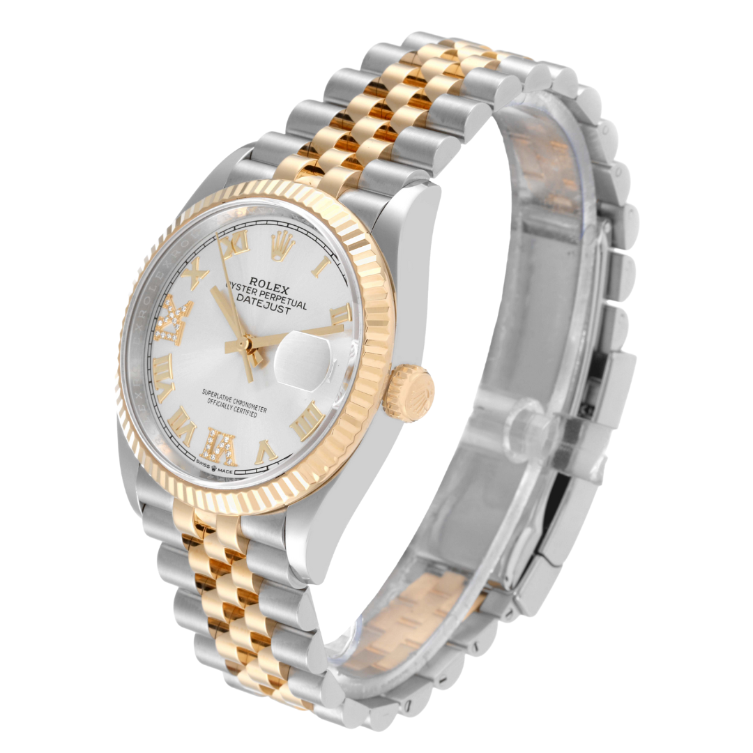 A bi-metal Rolex Datejust 36, reference 126233, combining stainless steel with 18ct yellow gold and finished with a silver dial featuring original Rolex diamond numerals at 6 and 9. This classic configuration remains one of the most sought-after Datejust variants, balancing everyday wearability with precious-metal appeal.