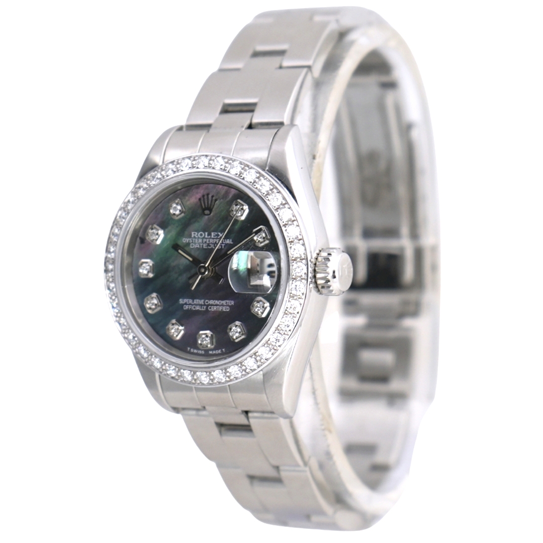 Rolex Datejust reference 69160, produced in 1998, presents a well-balanced combination of visual presence and long-term collectability. Crafted in stainless steel, it features an aftermarket diamond bezel and an aftermarket mother-of-pearl dial set with diamond numerals, giving the watch strong wrist appeal while retaining classic Datejust proportions.