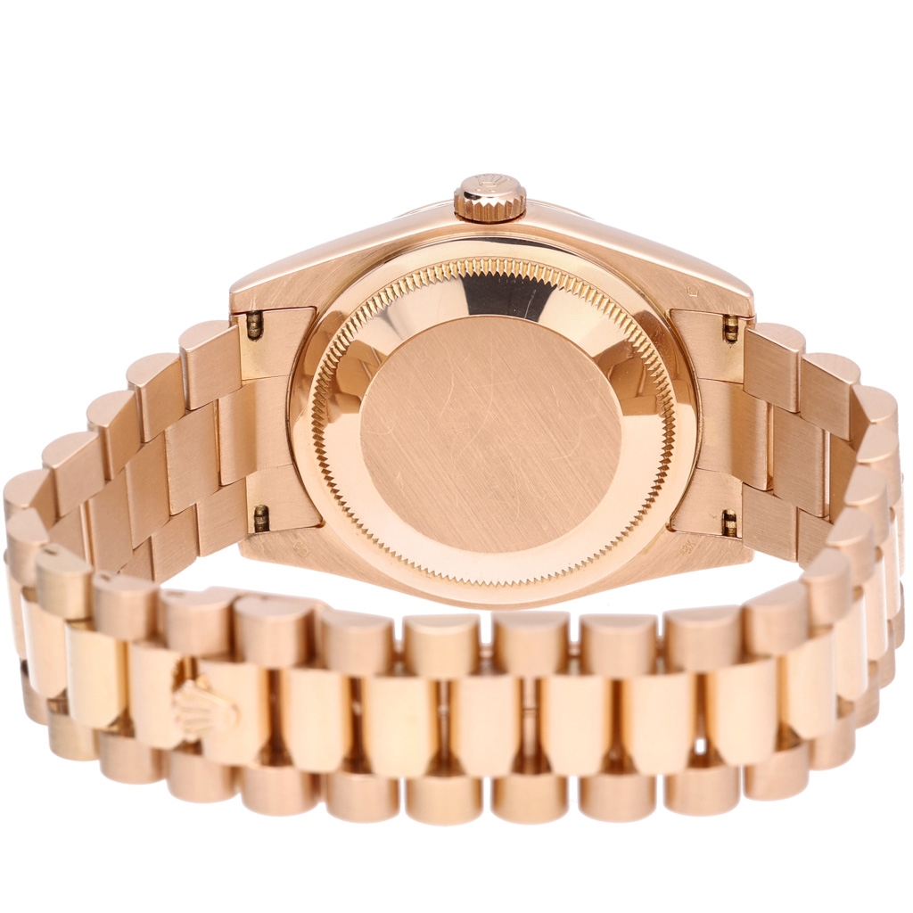 A Rolex Day-Date Watch, Full 18ct Rose Gold with a Pink Dial with Original Rolex Diamond Numerals