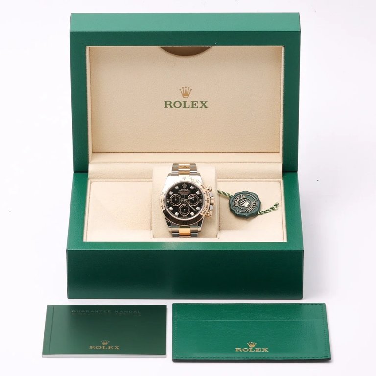 Overall, the Bi-Metal Rolex Daytona 116503 is more than just a timepiece; it is a statement of style and precision engineering, offering timeless appeal and dependable performance. Its blend of stainless steel, 18ct yellow gold, and diamond elements, combined with impeccable condition and comprehensive documentation, makes it a coveted addition to any luxury watch collection.