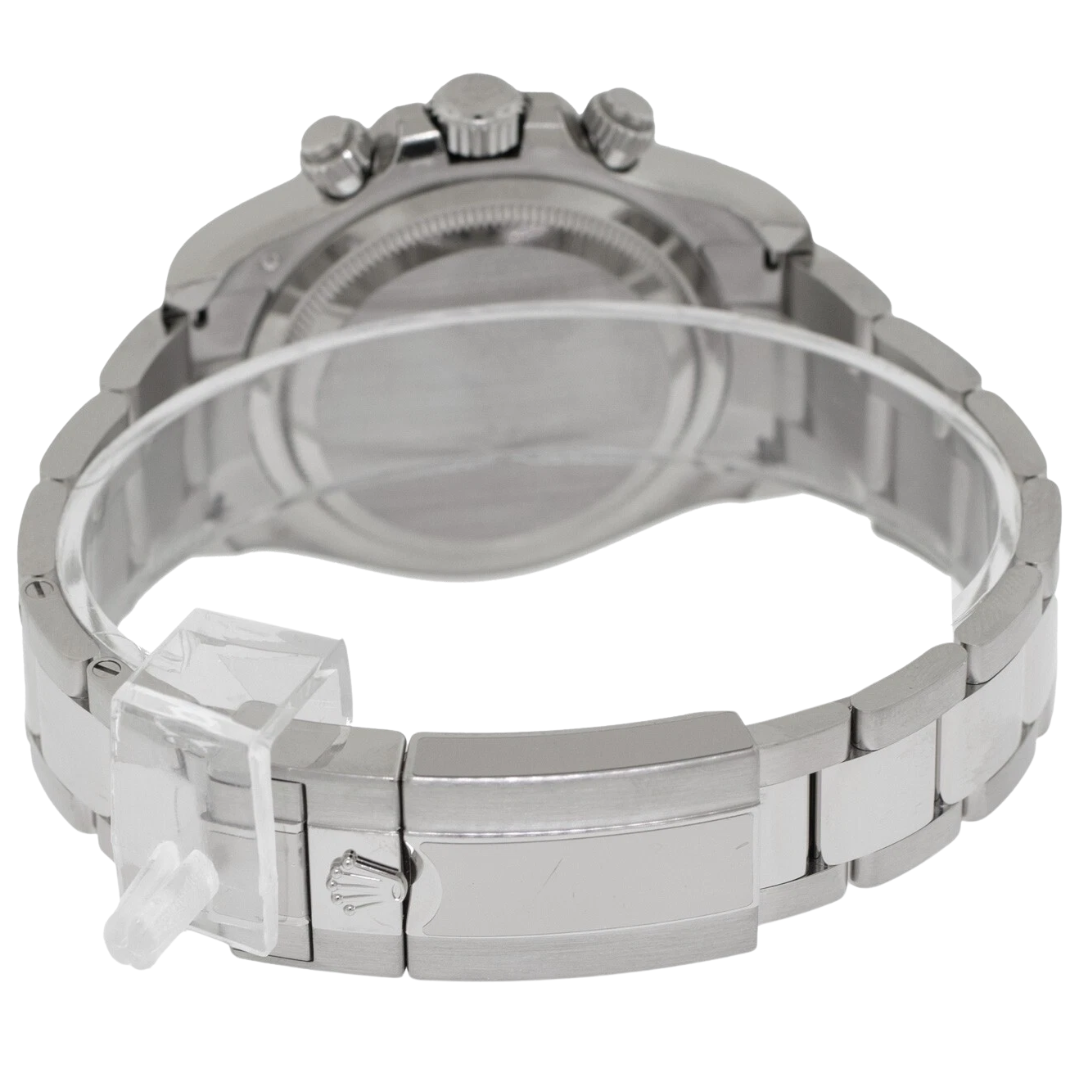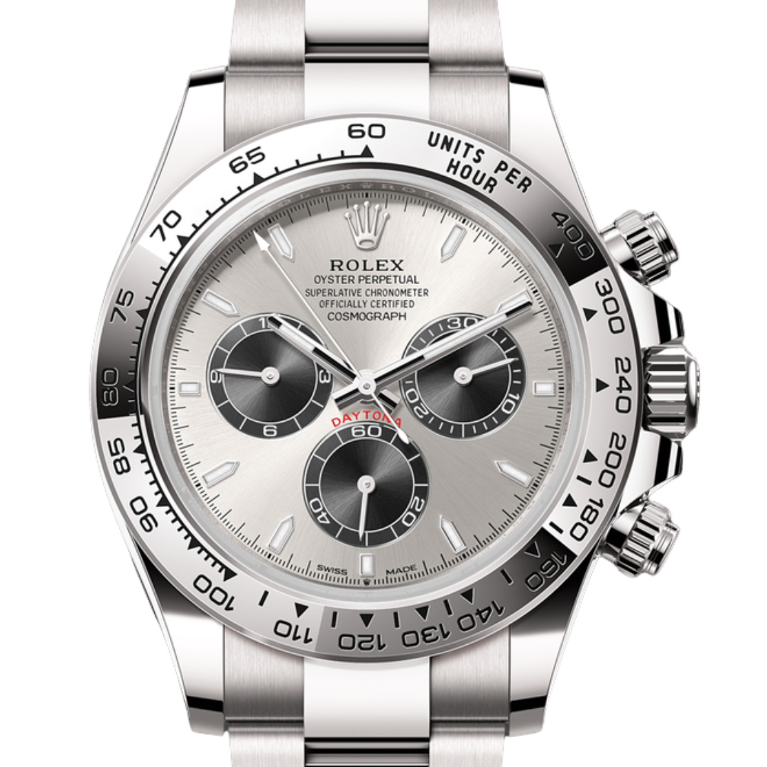 Powered by Rolex’s latest-generation Calibre 4131 automatic movement, this Daytona delivers outstanding chronometric accuracy, a refined finish, and a power reserve of approximately 72 hours. Every component of this timepiece has been meticulously engineered to meet the highest standards of durability and precision, from its solid white gold Oyster bracelet to the robust clasp that secures it with effortless comfort.