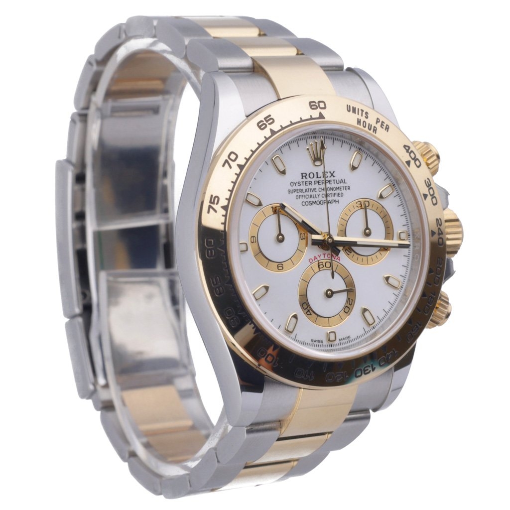 Owning a bi-metal Rolex Daytona in stainless steel and 18ct yellow gold with a white dial is a statement of refined taste and financial foresight. The watch’s luxurious design and exceptional craftsmanship make it suitable for any occasion, while its solid investment potential ensures that it remains a cherished asset. Don’t miss the opportunity to add this exceptional Rolex Daytona to your collection. It is a testament to Rolex's unparalleled craftsmanship, sophisticated style, and promising investment potential. This timepiece elevates your style and represents a solid investment that can be treasured and enjoyed for generations to come.