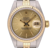 A Bi-Metal Rolex Daytona 116523, combining stainless steel and 18ct yellow gold with a striking black dial, black subdials, and factory-set diamond hour markers — a bold and elegant take on one of Rolex’s most iconic chronographs. The contrast between the gold accents and black dial gives this Daytona a rich, luxurious aesthetic, further elevated by the original Rolex diamond numerals.