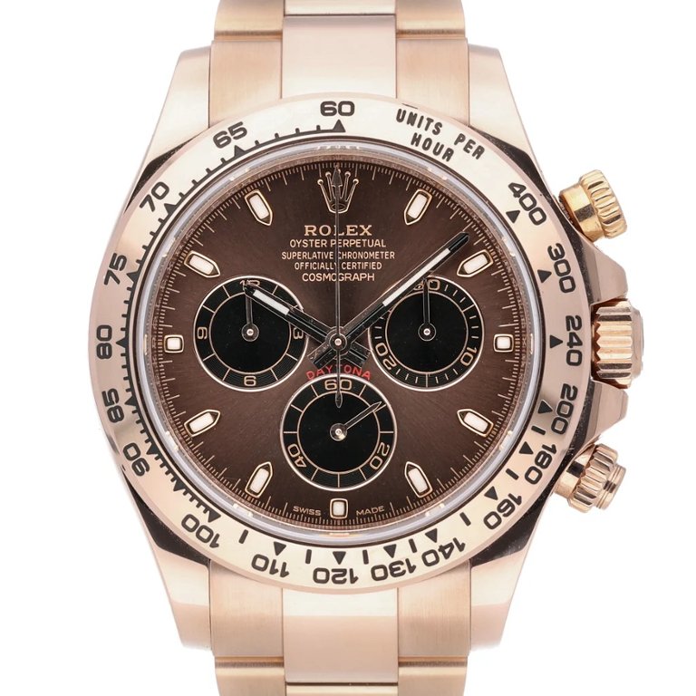 A Rolex Daytona Watch, Full 18ct Rose Gold with a Chocolate Dial.