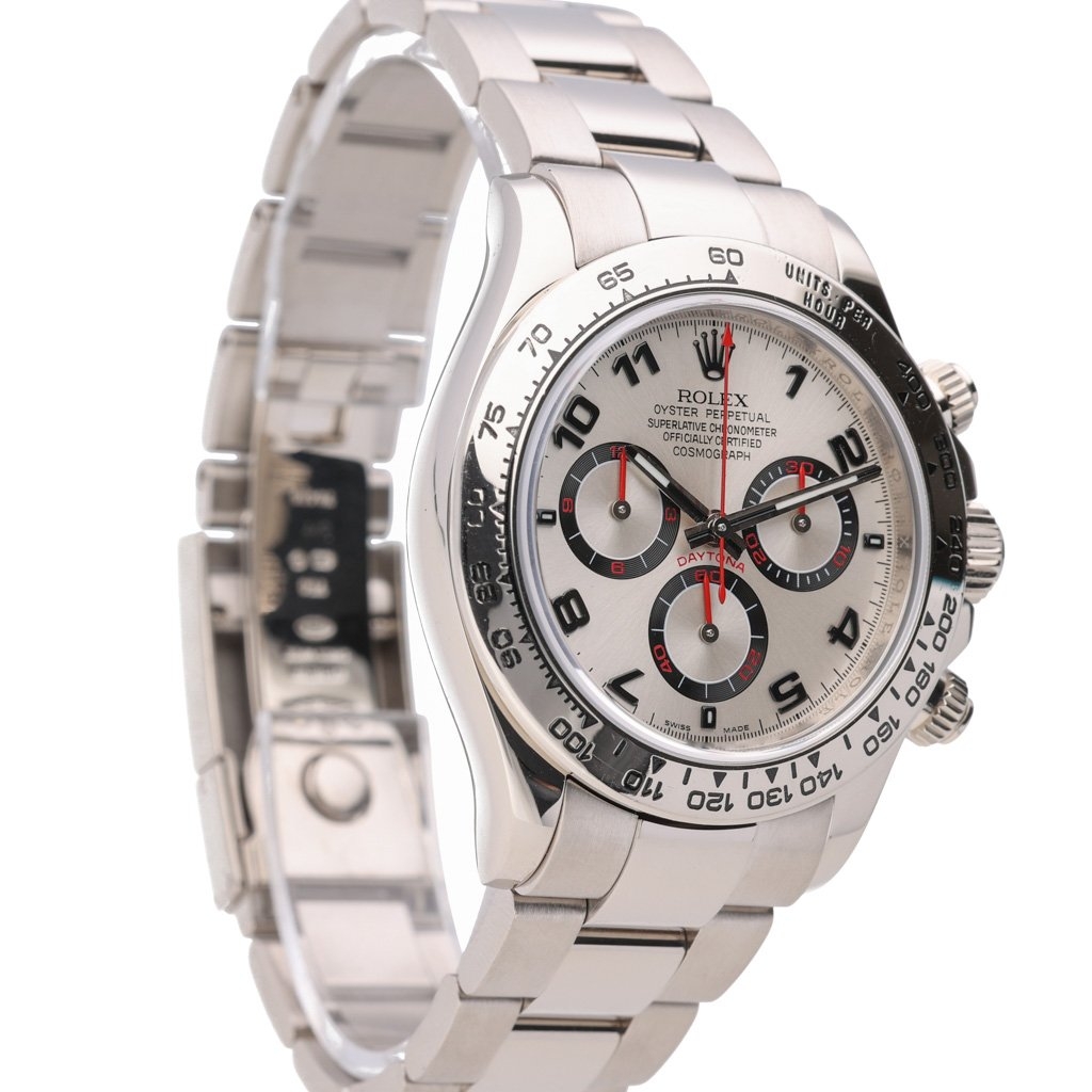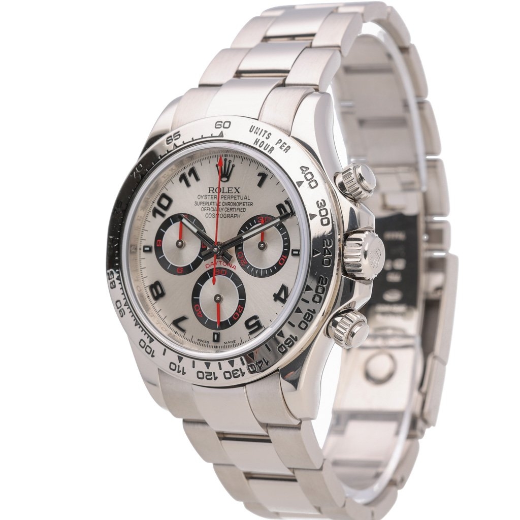 A Rolex Daytona Watch, Full 18ct White Gold with a Silver Dial with Black Sub-dials.