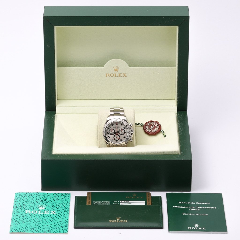 This particular Daytona, manufactured in 2012, bears the model number 116509. It boasts a classic 40mm case size that exudes timeless appeal and a perfect balance between sportiness and sophistication. Powered by a high-performance automatic movement, it ensures unparalleled accuracy and reliability, meeting the highest standards of Swiss craftsmanship.