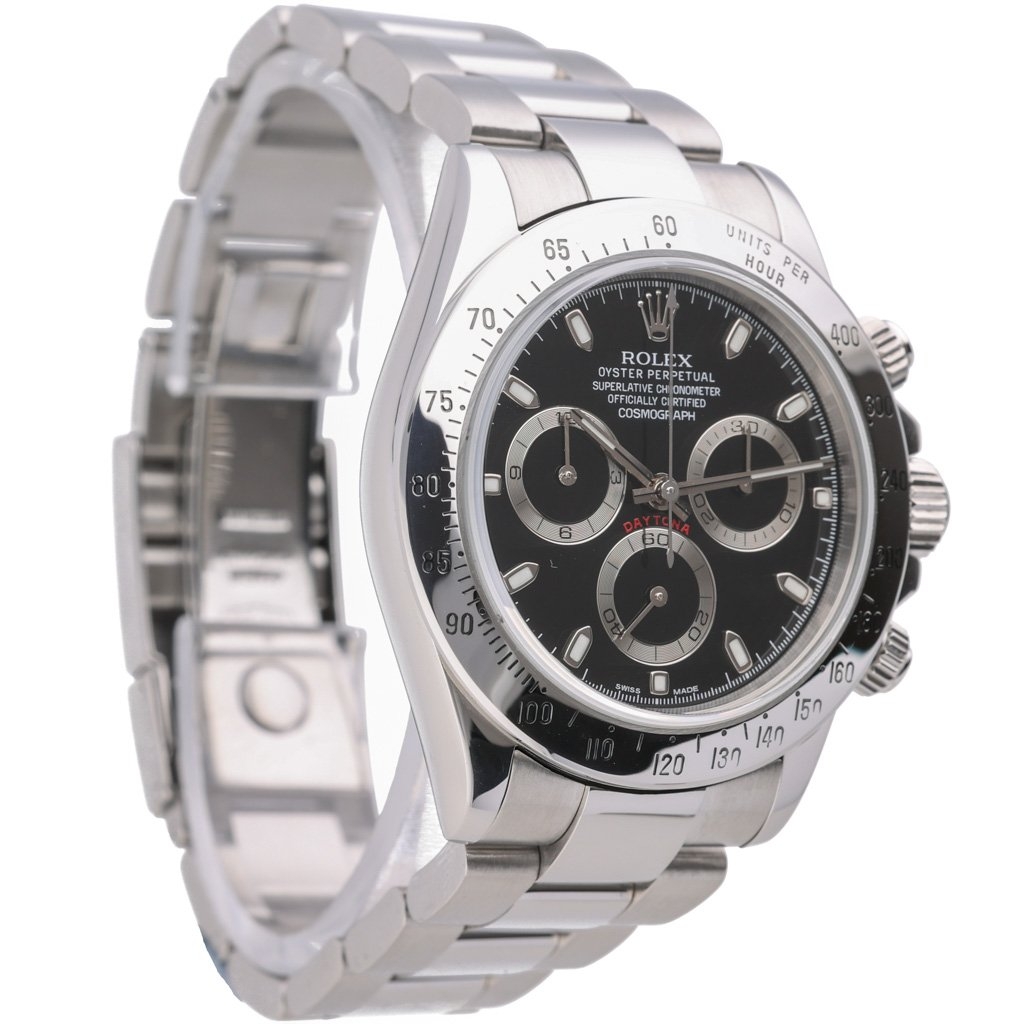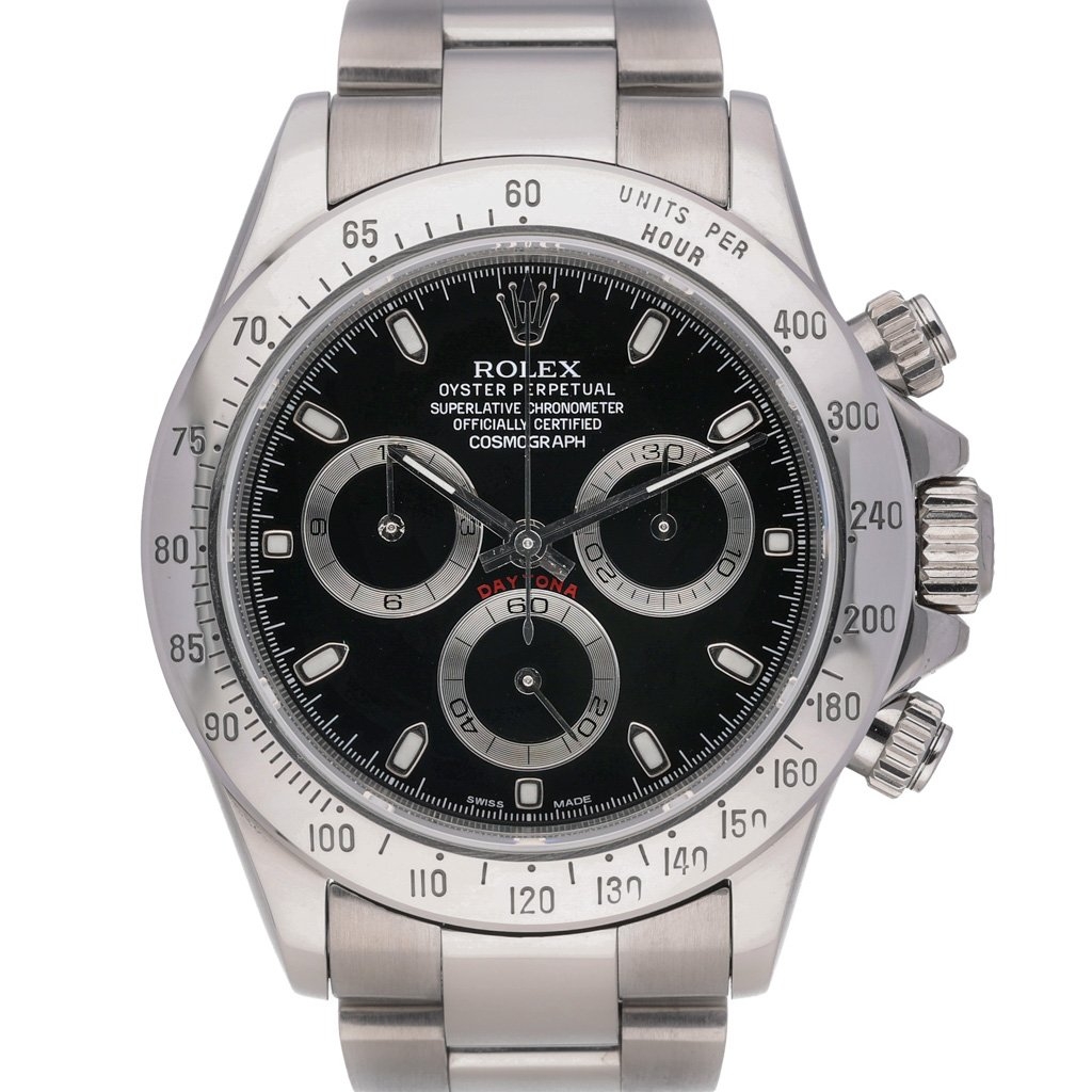 A Rolex Daytona Watch, Stainless Steel on a Black Dial