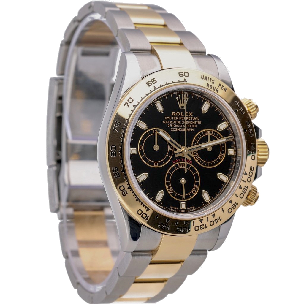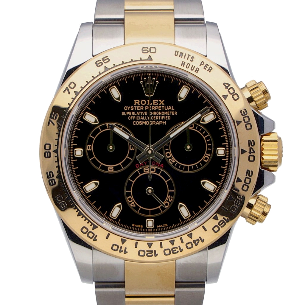 A Bi-Metal Rolex Daytona Watch, Stainless Steel and 18ct Yellow Gold with a Black Dial.