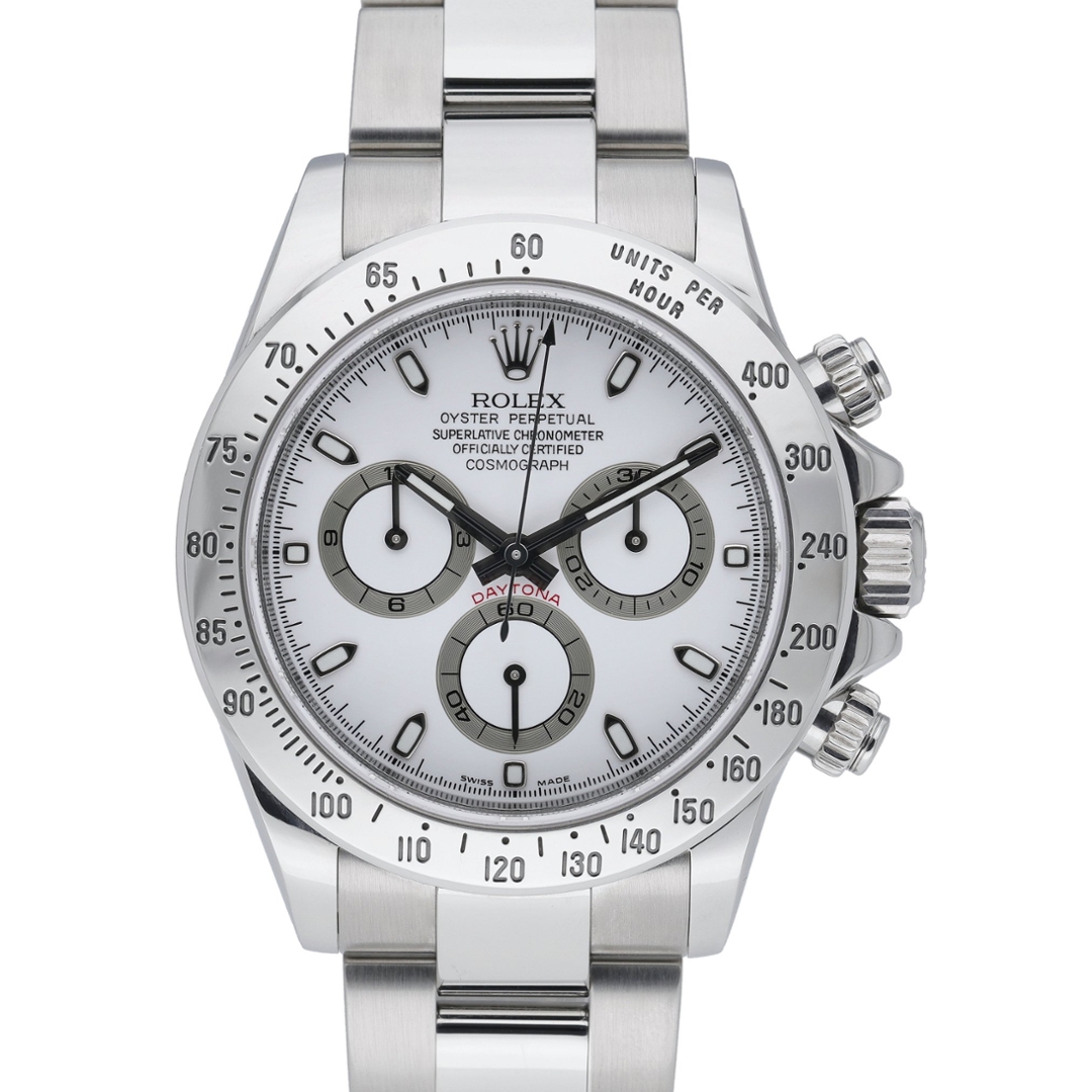 A Rolex Daytona Watch, Stainless Steel on a White Dial