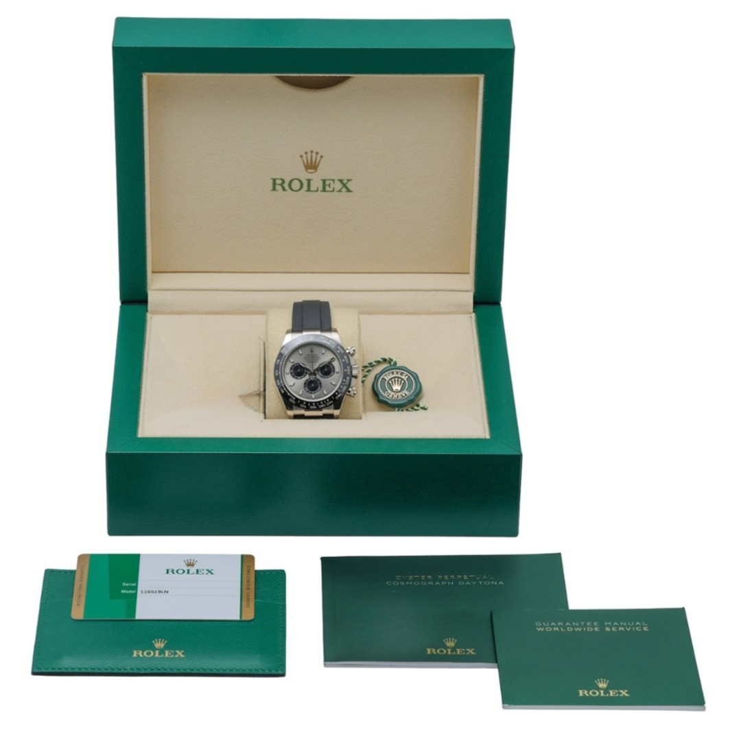 The watch is supplied as a complete full set, including its original box, certification and complete paperwork. With its precious metal case, modern bezel design and distinctive dial configuration, the 116519LN offers a sophisticated interpretation of the Daytona’s celebrated chronograph design.