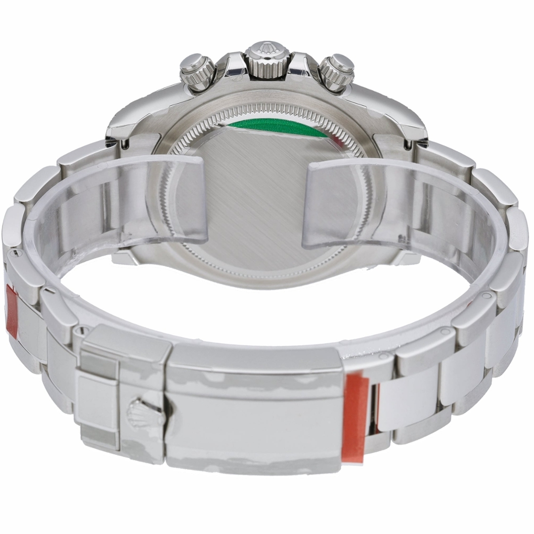 The Daytona's Rolex Calibre 4131 automatic movement powers it, offering high-performance chronograph functionality, enhanced precision, and an improved power reserve. The refined case design and solid Oyster bracelet ensure maximum durability and comfort, while the contrasting subdials and sharp detailing make this reference a standout on the wrist.