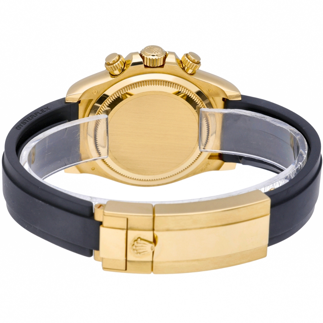 Powered by the Rolex Calibre 4131 automatic chronograph movement, this latest-generation Daytona incorporates an optimised chronograph architecture, improved efficiency and enhanced finishing. The combination of a precious metal case and a high-performance Oysterflex bracelet offers both durability and contemporary appeal, making this one of the most versatile modern gold Daytona configurations.