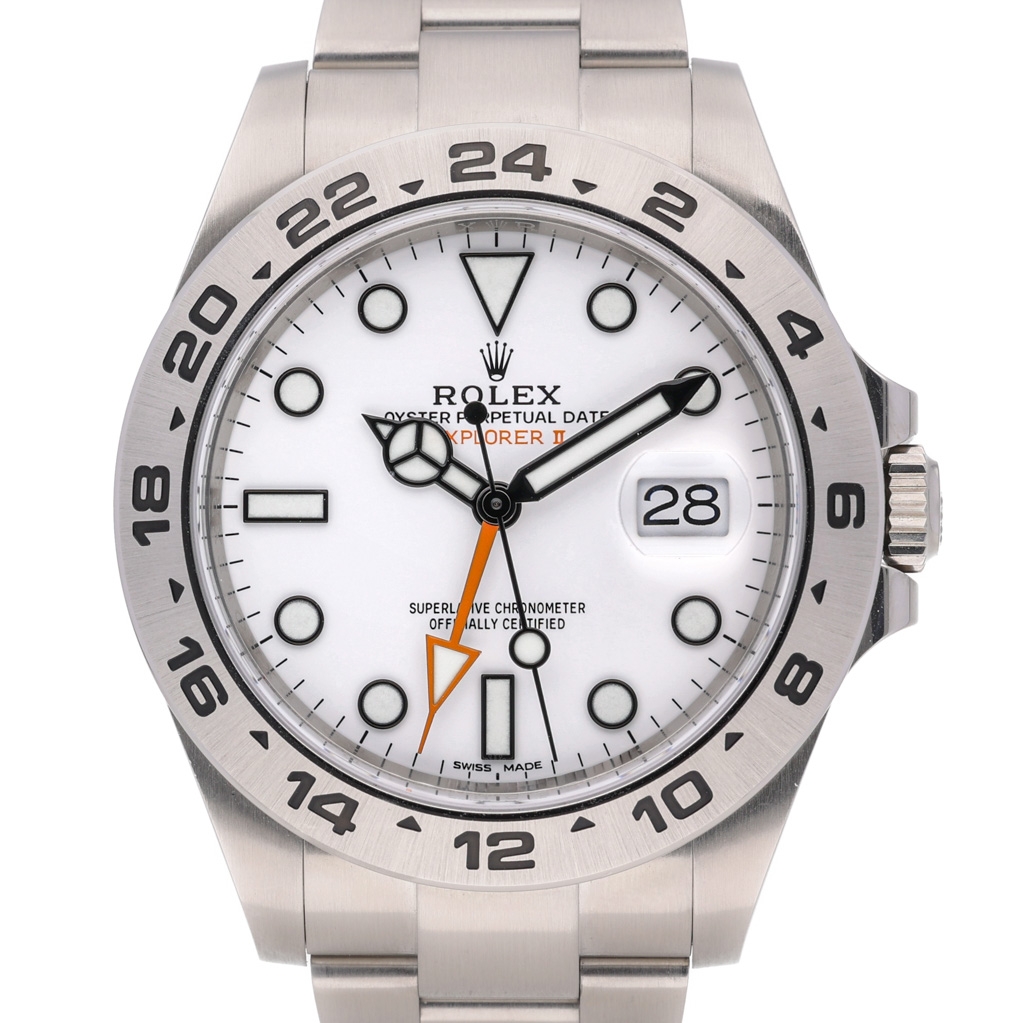 A Rolex Explorer II Watch, Stainless Steel with a White Dial.
