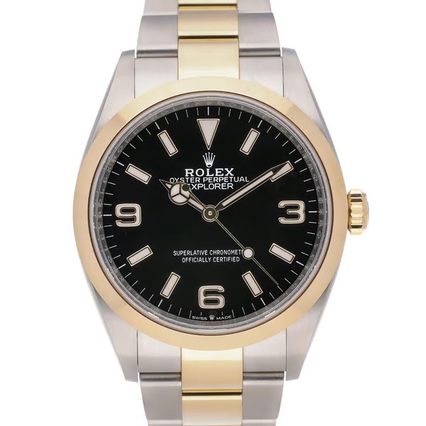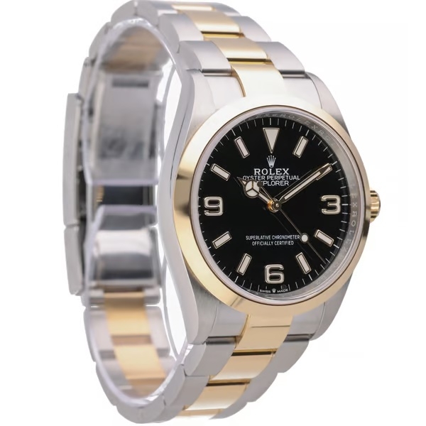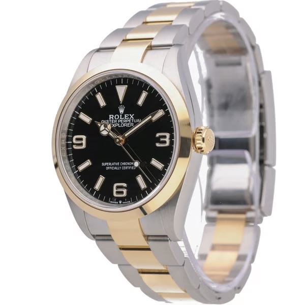 A 2025 Rolex Explorer, model 124273, is a testament to Rolex’s unparalleled craftsmanship and legacy. Featuring a striking combination of stainless steel and 18ct yellow gold, this bi-metal masterpiece boasts a yellow gold bezel that beautifully frames the deep black dial, creating a refined yet adventurous aesthetic. The 36mm case size perfectly balances classic elegance and everyday wearability, ensuring this watch stands out on the wrist while remaining practical for daily use.