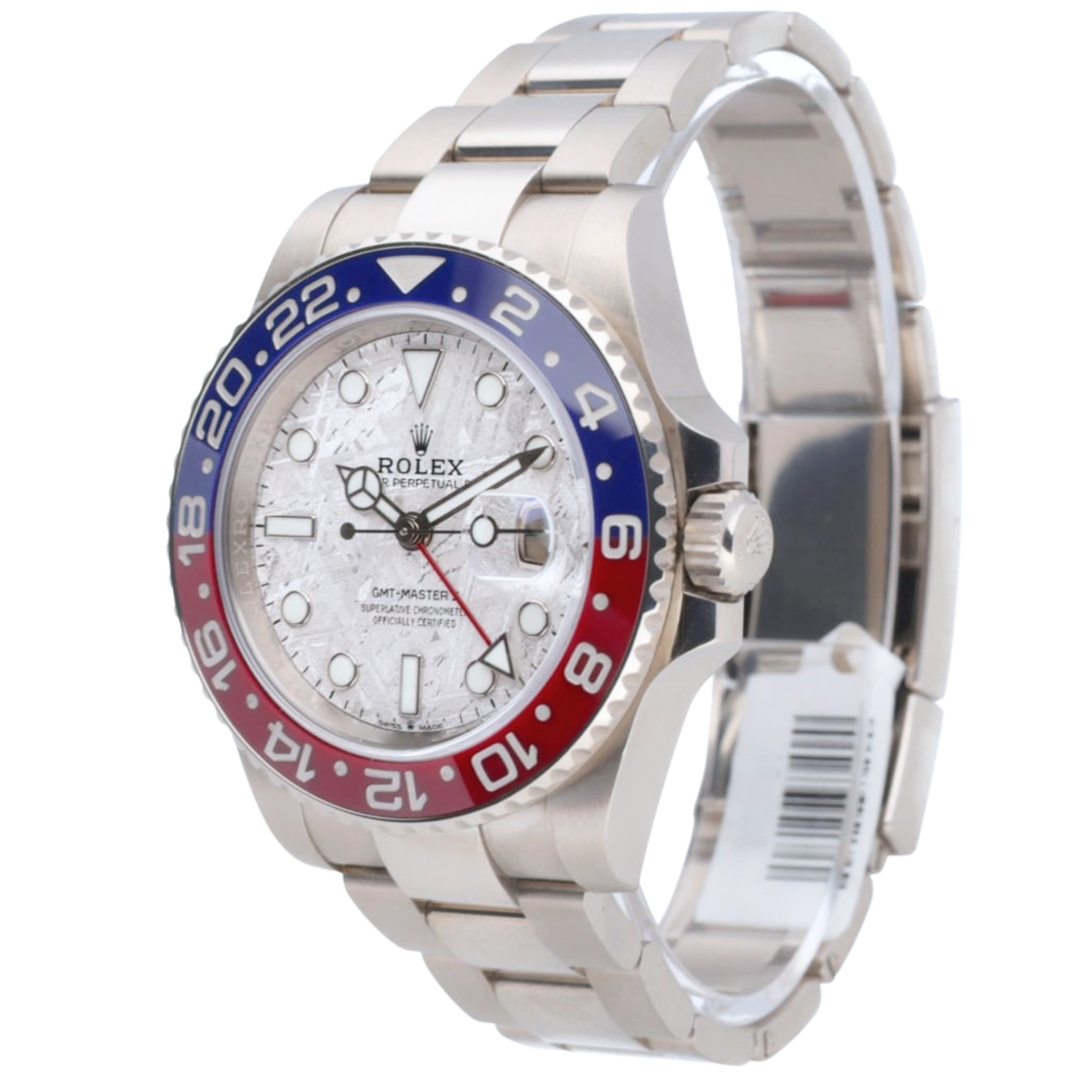 A Rolex GMT-Master II Watch, 18ct White Gold with a Blue/Red Bezel and a Meteorite Dial.