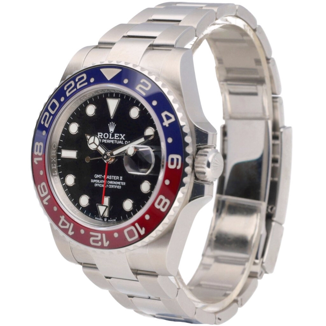 The 40mm case size strikes a perfect balance between presence and comfort, making it suitable for a wide range of wrist sizes. Powered by automatic movement, this GMT-Master II ensures precise and reliable timekeeping, embodying Rolex's renowned engineering excellence. The watch is in immaculate condition, reflecting its meticulous care and pristine quality, making it an ideal piece for collectors and investors alike.