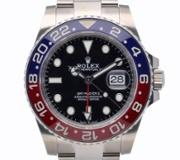 A Rolex GMT-Master II Watch, Stainless Steel with Black & Grey Bezel on a Black Dial.