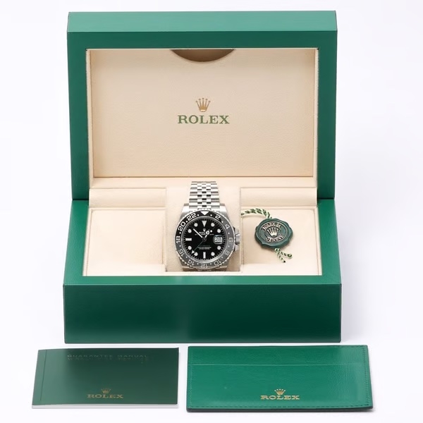 The watch also comes in a box and is covered by Rolex's manufacturer's warranty until 2029, providing long-term coverage.