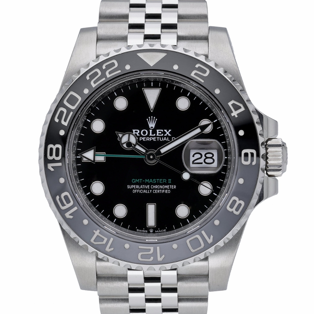 Designed for world travellers and aviation professionals, this 40mm model showcases Rolex’s innovative dual-time functionality via the bold green GMT hand, allowing the wearer to track two time zones simultaneously with ease and precision. The watch is fitted with the Jubilee bracelet—renowned for its elegance and supreme comfort—paired with an Oysterlock safety clasp.