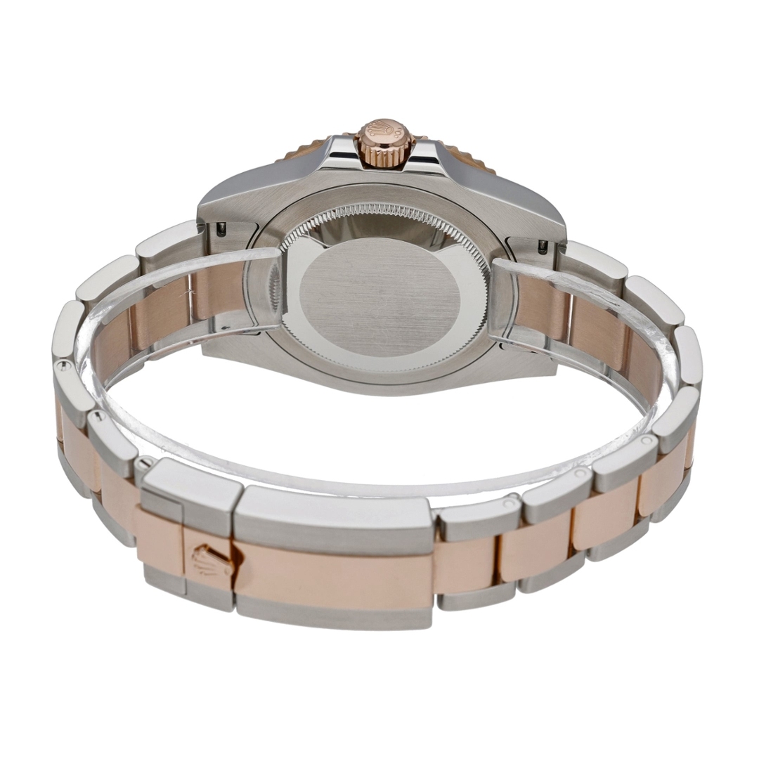 A Rolex GMT-Master II Watch, Stainless Steel and 18ct Rose Gold with a Brown/Black Bezel and a Black Dial.