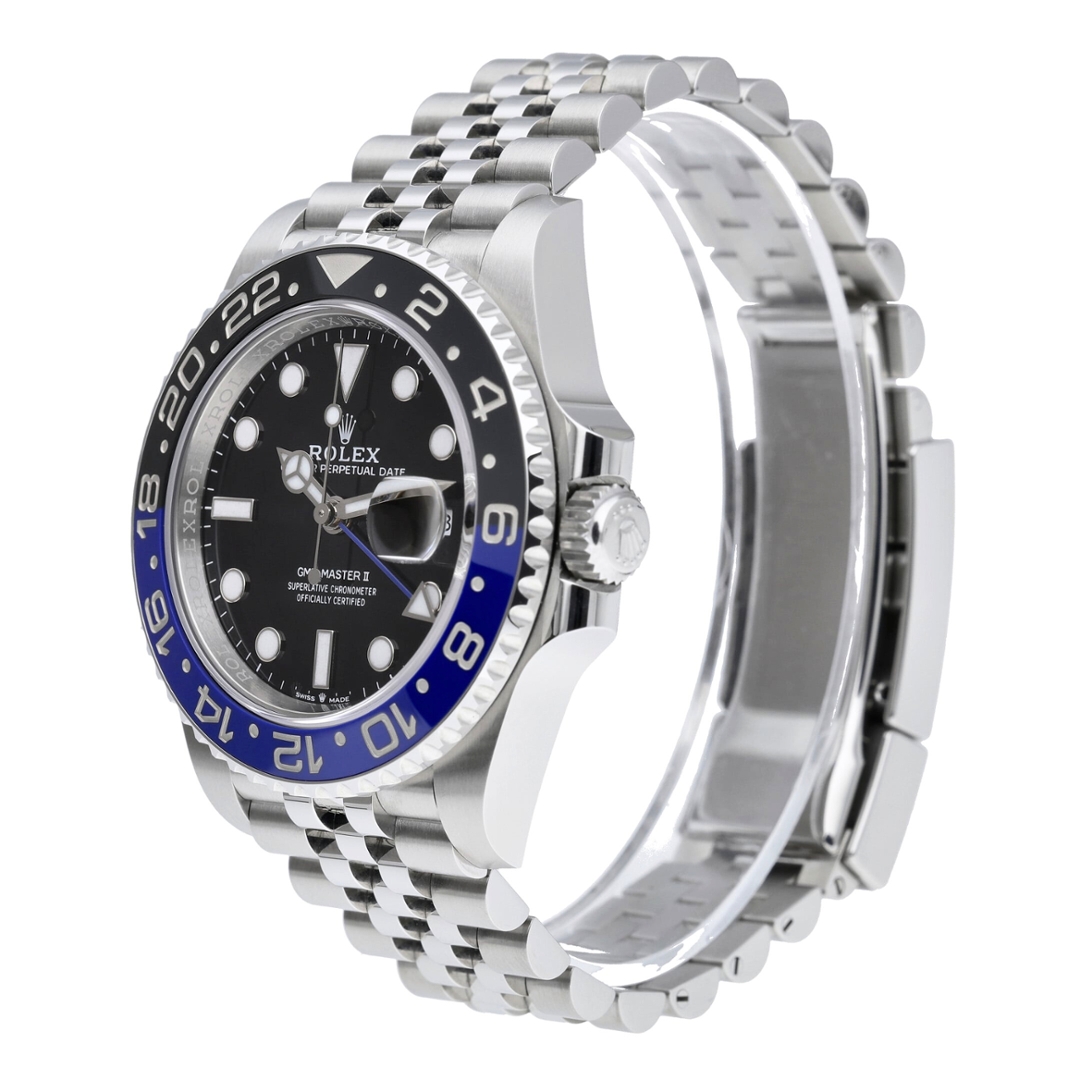 A Rolex GMT-Master II reference 126710BLNR, often referred to as the “Batgirl”, is one of the most recognisable and consistently demanded modern Rolex sports models. Produced in stainless steel with the signature black-and-blue Cerachrom bezel and paired here with the Jubilee bracelet, this 40mm configuration has proven especially popular with collectors and investors since its reintroduction in this format. The black dial, luminous hour markers, and independent GMT hand deliver the functional DNA that defines the GMT-Master lineage.