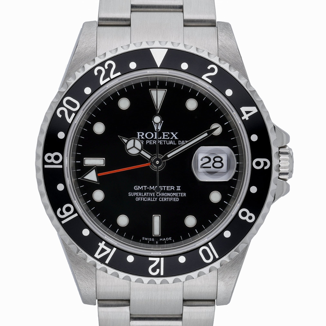 A Rolex GMT-Master II Watch, Stainless Steel with a Black Bezel & Dial.