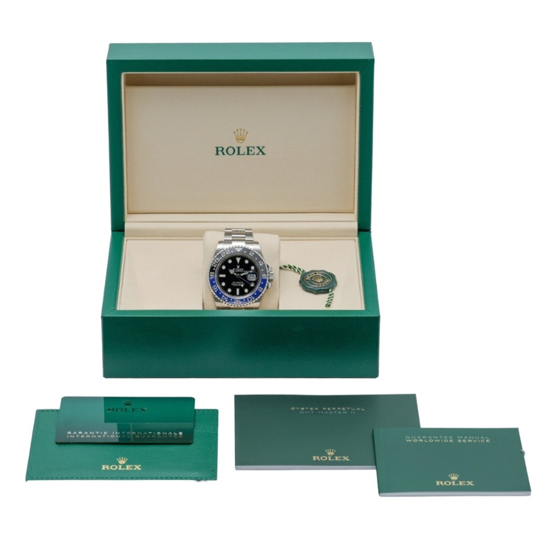 A Rolex GMT-Master II 126710BLNR with an Oyster bracelet, also known as the "Batman" due to its striking black-and-blue bezel and Oyster Bracelet, is a sophisticated, versatile timepiece that seamlessly blends luxury with functionality. Introduced in 2025, this watch boasts a 40mm stainless steel case.