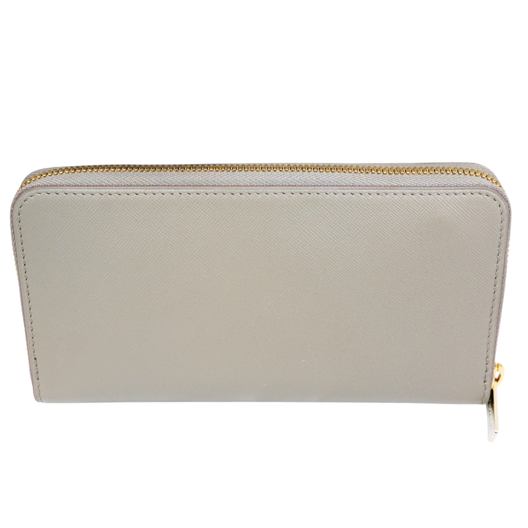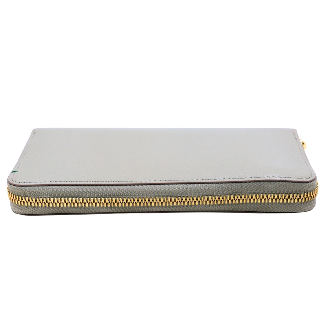 The interior is thoughtfully arranged with multiple card slots, slip compartments, and a central zipped coin section, providing practical organisation without compromising its streamlined profile. The robust saffiano leather construction offers durability alongside a finely textured finish, making this purse well-suited to regular use while retaining a composed appearance.
