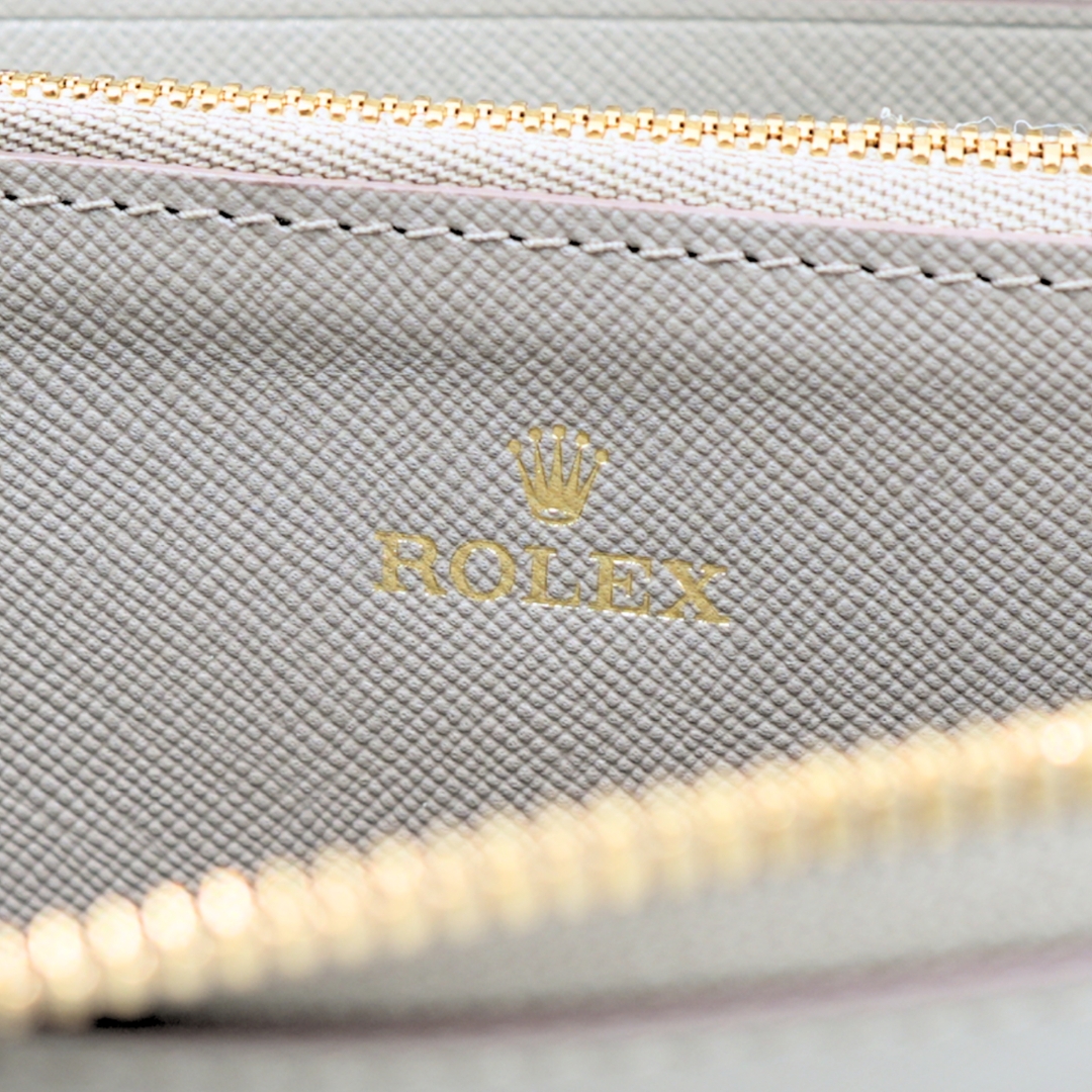- > Rolex Grey Leather Zip-Around Purse with Presentation Box.