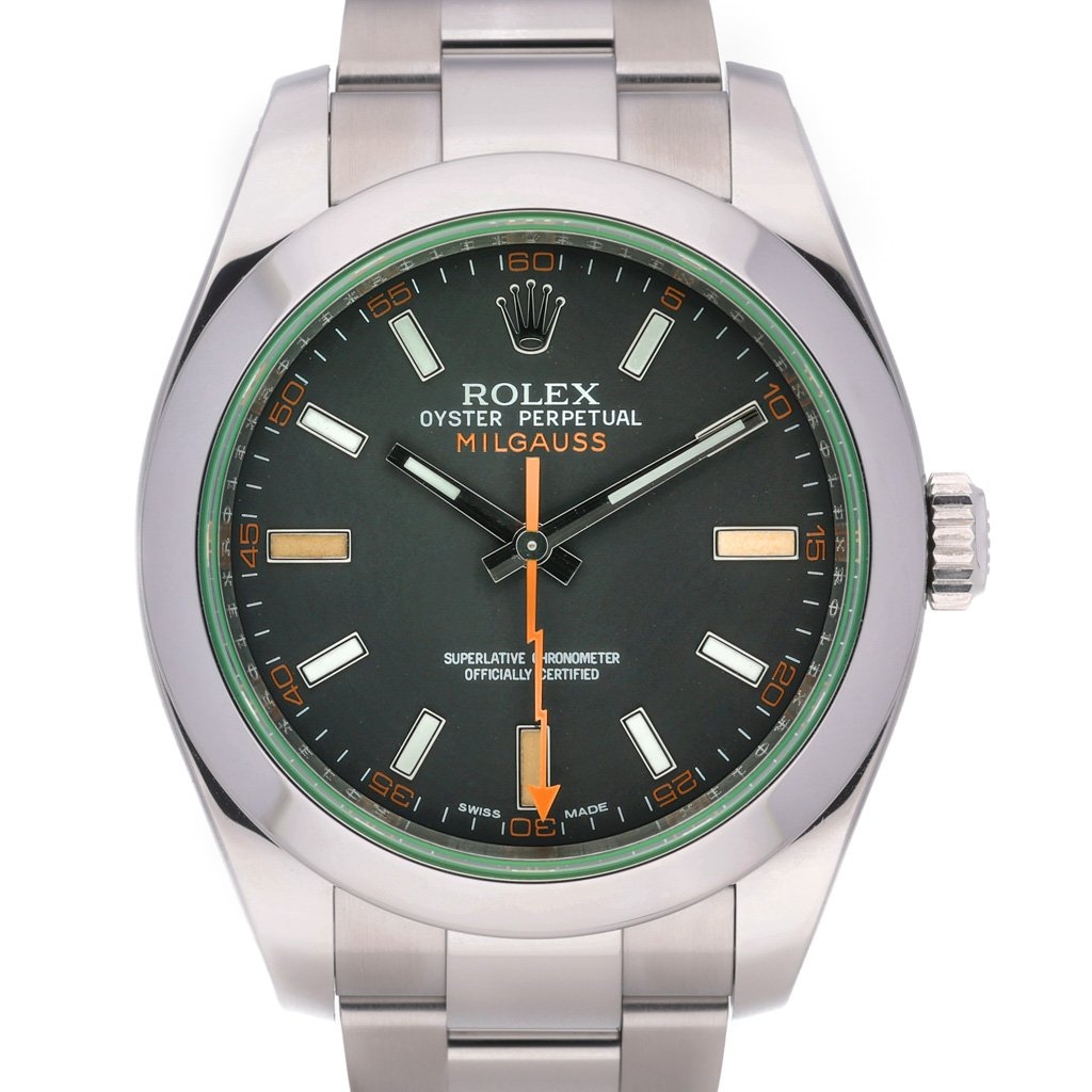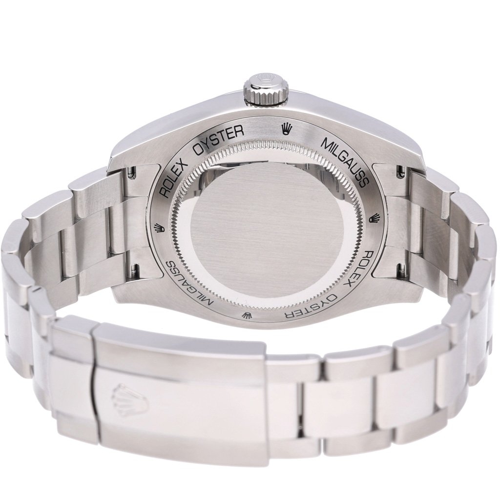 A Rolex Milgauss Watch, Stainless Steel on a Black Dial
