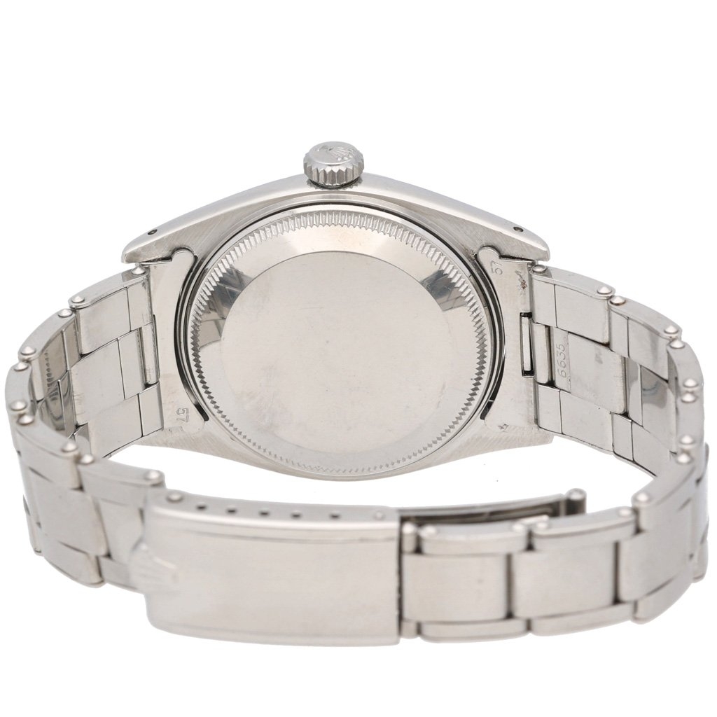 Powered by the Rolex Calibre 1035, a self-winding chronometer-certified movement from the brand’s golden era, this piece represents an important step in Rolex’s evolution, bridging the early Oyster Perpetual designs with the more modern Datejust lineage. The stainless steel case and gold-tone markers further emphasise its timeless vintage appeal.