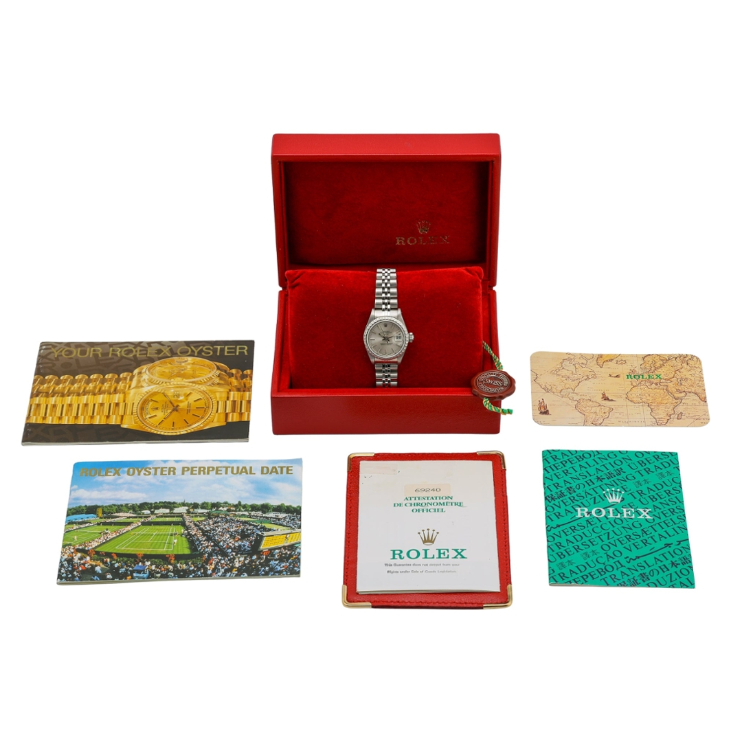 Presented as a 1991 example, this piece captures the enduring appeal of vintage Rolex design in a wearable, understated form. Supplied with original Rolex paperwork and presented in its box, it also includes a 12-month WLC warranty, making it a strong addition for both collectors and those seeking an everyday luxury timepiece.