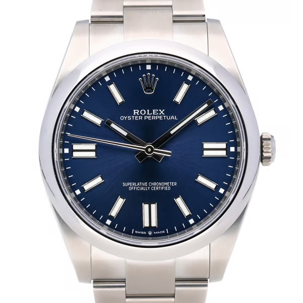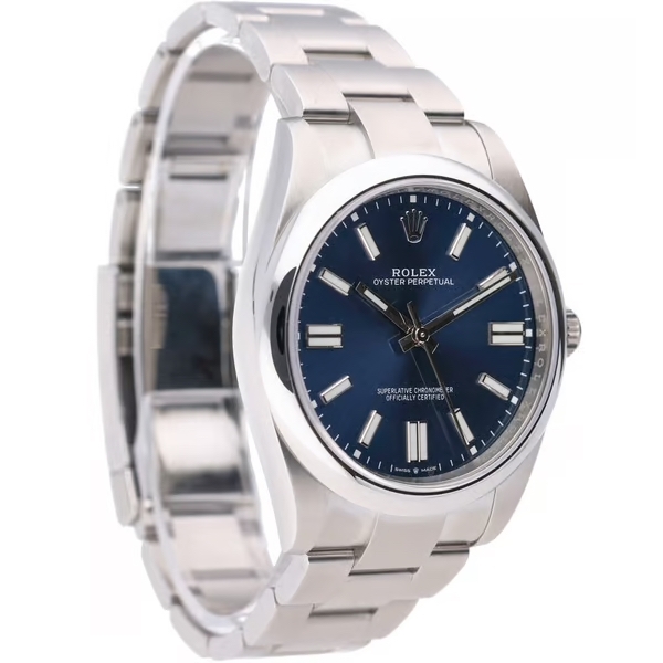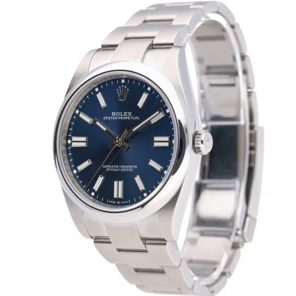 A Rolex Oyster Perpetual 124300 is a contemporary expression of Rolex's timeless design, perfect for those who appreciate understated luxury and precision. This 2021 model is crafted from stainless steel, featuring a sleek 41mm case that offers both durability and elegance. The striking blue dial, with its simple yet sophisticated layout, adds a modern touch to this classic watch, making it versatile enough for both casual and formal wear.