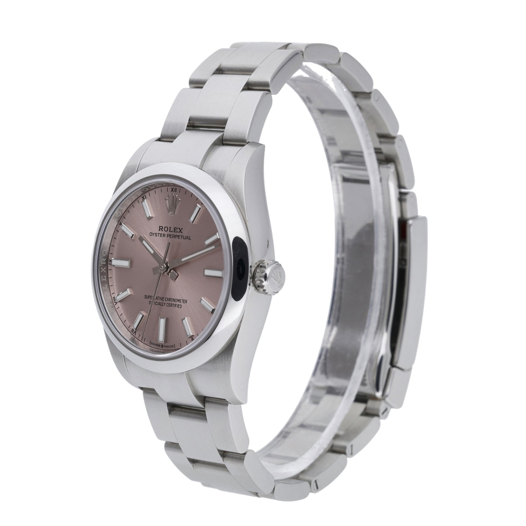 Dated 2022 and presented in immaculate condition, this example comes complete with its original Rolex box, full set of paperwork, and certification. Backed by the Rolex manufacturer's warranty until 2027, it offers complete assurance and lasting value. The Rolex Oyster Perpetual 34, with its pink dial, perfectly captures the essence of modern luxury — a pure, elegant classic built to stand the test of time.
