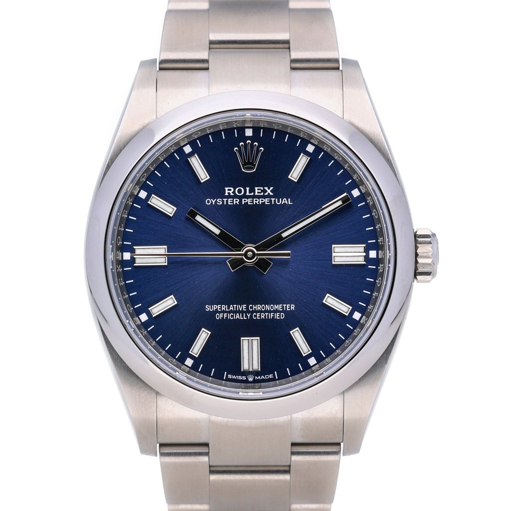 A Rolex Oyster Perpetual 36, reference 126000, is a true embodiment of Rolex’s understated elegance and exceptional craftsmanship. Constructed entirely from stainless steel, this 36mm model achieves the perfect balance between sporty versatility and refined sophistication. The striking blue dial commands attention with its clean, sunray-brushed finish, accentuated by luminous baton hour markers and the signature smooth bezel — a timeless design that epitomises the pure essence of Rolex.
