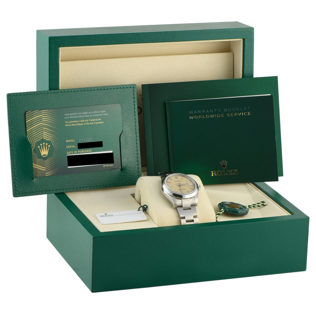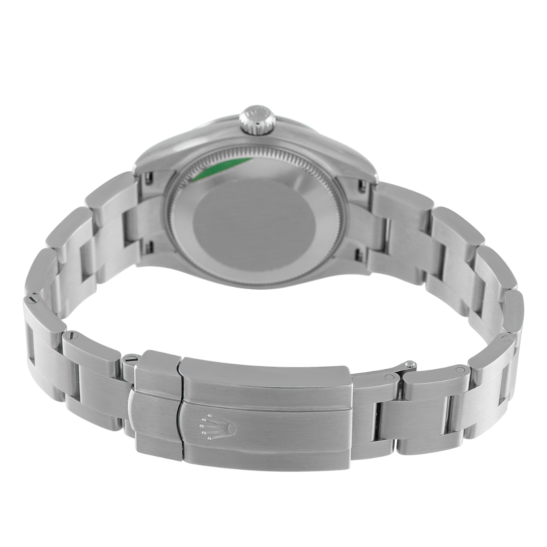 Complete with its original full set of paperwork, this watch comes boxed and certified, and is supported by the Rolex Manufacturer Warranty until 2030. Its clean aesthetic, modern dial colour and dependable engineering make it an appealing choice for collectors and daily wearers seeking an understated yet distinctive Rolex.