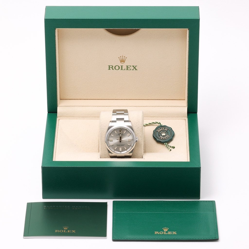 In immaculate condition, this 2023 model comes with the original complete set of paperwork, confirming its authenticity. Boxed and certified, the watch is still covered by the Rolex manufacturer's warranty until 2028, providing peace of mind for years to come. The Oyster Perpetual 126000 is the perfect balance of simplicity and luxury, making it a versatile addition to any collection.
