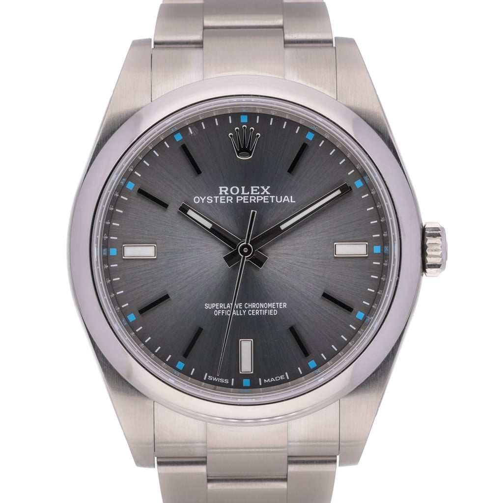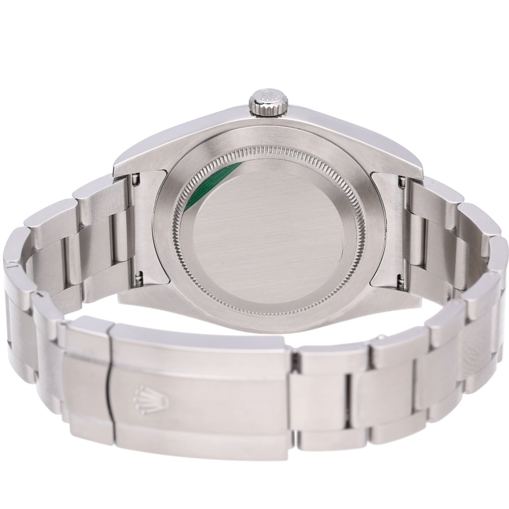 The watch is powered by the Rolex Calibre 3132 automatic movement, a Superlative Chronometer known for its reliability, precision, and robustness. The movement incorporates Rolex’s Paraflex shock absorbers and offers excellent long-term durability, housed within the waterproof Oyster case rated to 100 metres. The smooth bezel and Oyster bracelet maintain the clean, tool-watch purity that defines the Oyster Perpetual line.