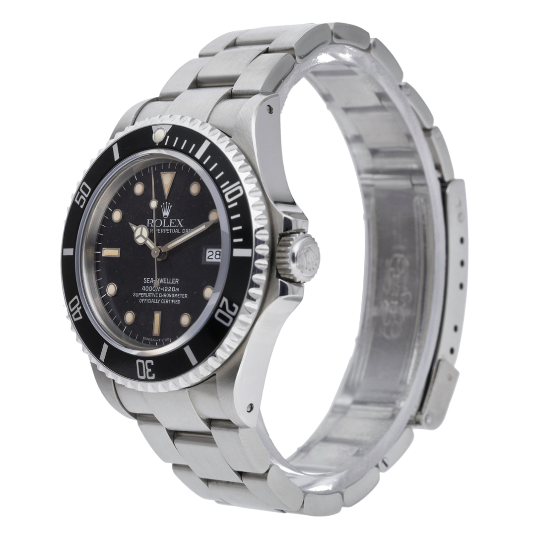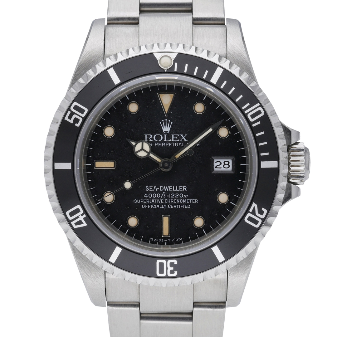 Powering this reference is the Rolex Calibre 3035, an automatic mechanical movement renowned for its robustness and reliability. This calibre introduced the quickset date function and was engineered to perform under extreme conditions, making it well-suited to the Sea-Dweller’s professional specification. The unidirectional bezel enables precise dive timing, while the reinforced case construction provides greater water resistance than contemporary Submariner models.