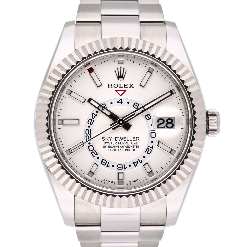 A Bi-Metal Rolex Sky-Dweller Watch, Stainless Steel & 18ct White Gold with an 18ct White Gold Fluted Bezel on an Intense White Dial