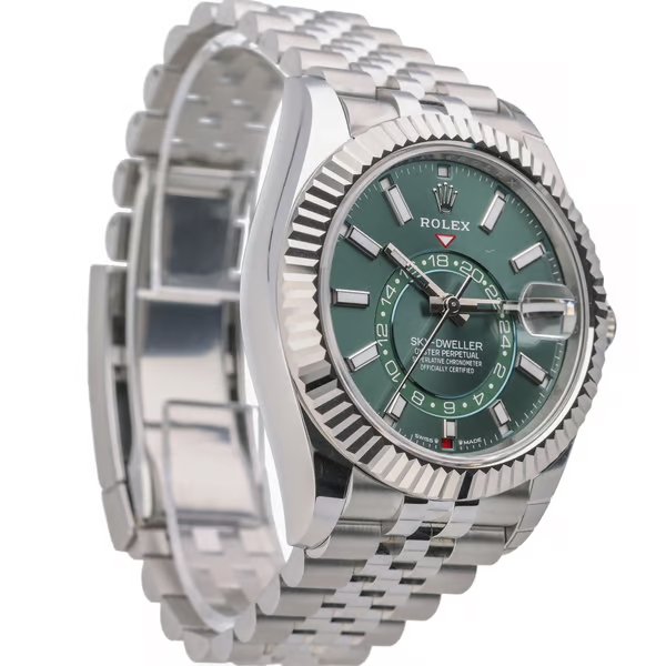 The Rolex Sky-Dweller 336934 stands out not just for its aesthetic appeal but also for its strong investment potential. Its unique combination of stainless steel, white gold, and a rare green dial ensures it will remain a coveted piece. The advanced features, luxurious materials, and impeccable design make it a standout in the market. For those seeking both a stylish accessory and a valuable investment, this timepiece offers a perfect blend of elegance, functionality, and financial growth potential, securing its place as a prized asset in any sophisticated collection.