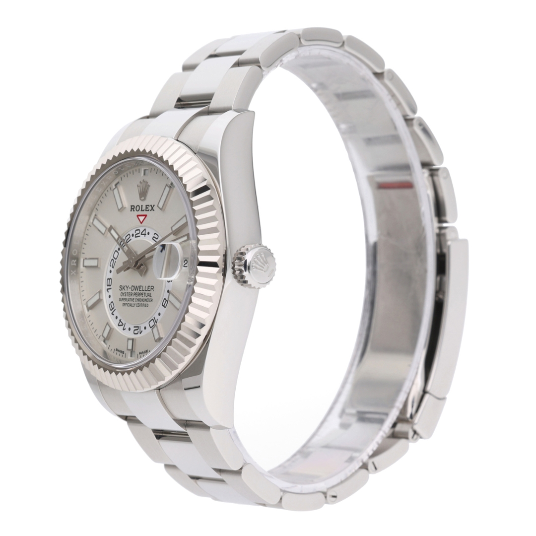 A Rolex Sky-Dweller Watch, Stainless Steel & 18ct White Gold with an 18ct White Gold Fluted Bezel on an Intense White Dial