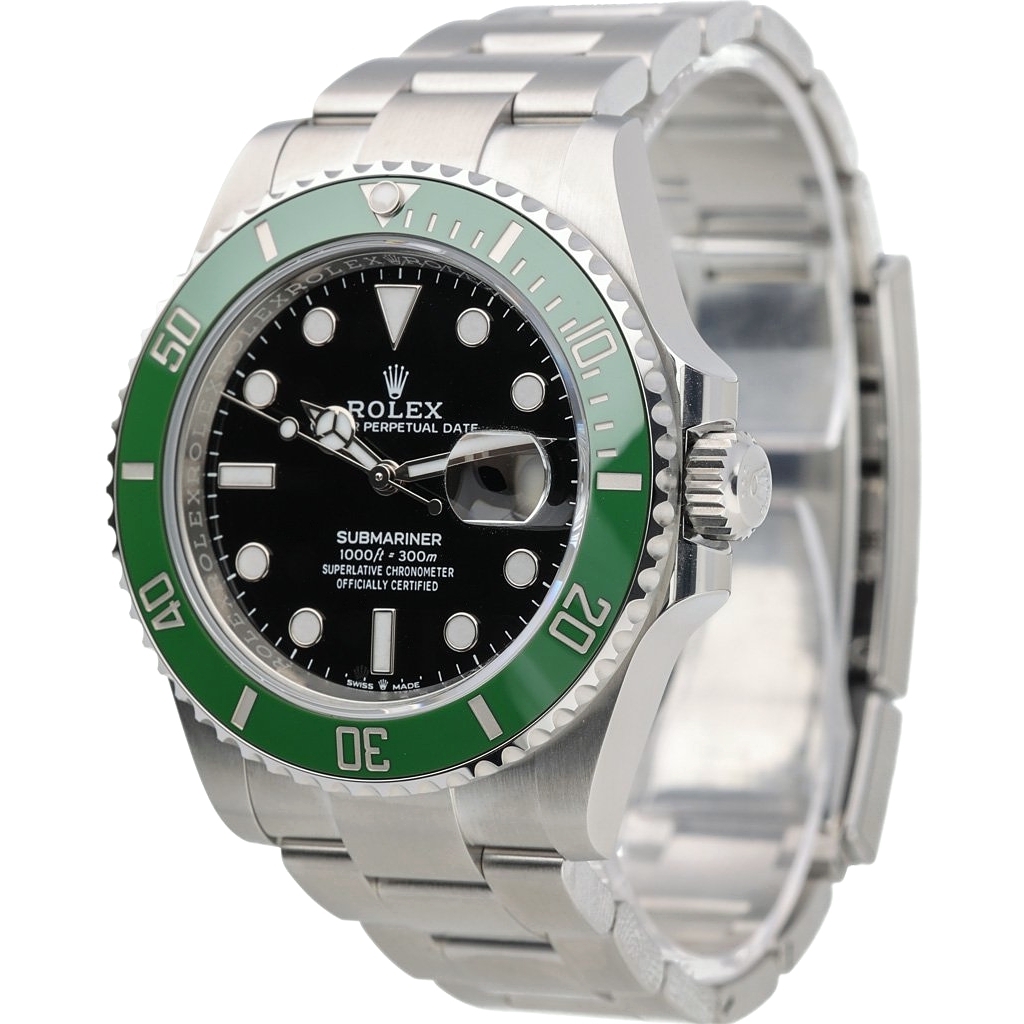 Highly sought after and consistently difficult to secure at retail, the green Submariner remains one of Rolex’s strongest modern sports references. This near-new, full-set example represents an exceptional opportunity, offering immediate wearability, enduring market strength, and proven long-term desirability.