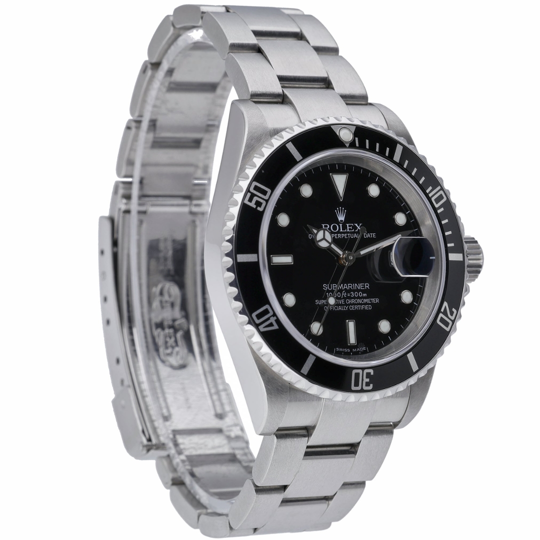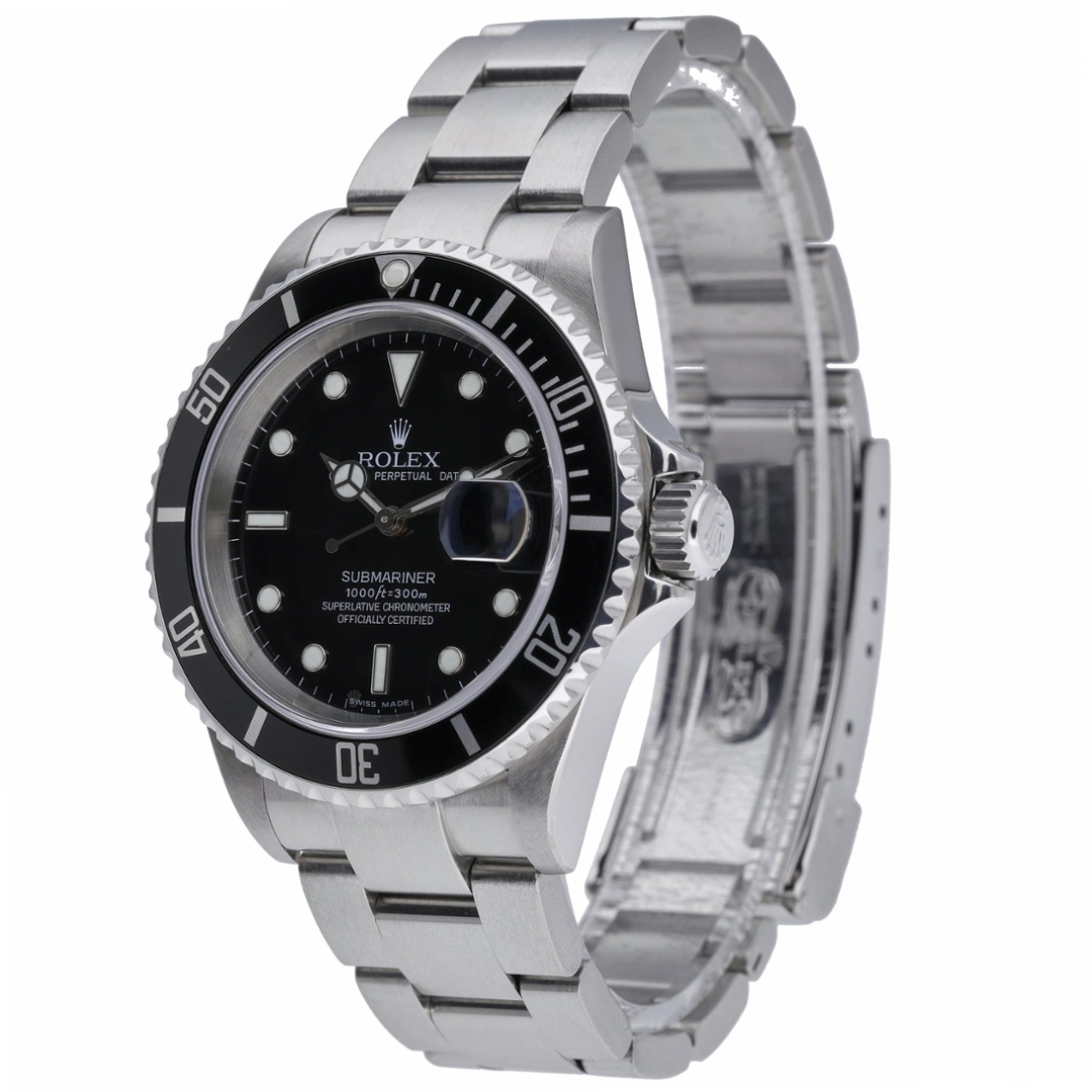 A Rolex Submariner 16610, crafted in 2007, is a quintessential symbol of luxury and precision in timepieces. This iconic model is housed in a robust 40mm stainless steel case, offering durability and elegance. The black bezel and dial provide a striking contrast, exuding a timeless aesthetic that seamlessly blends functionality with style.