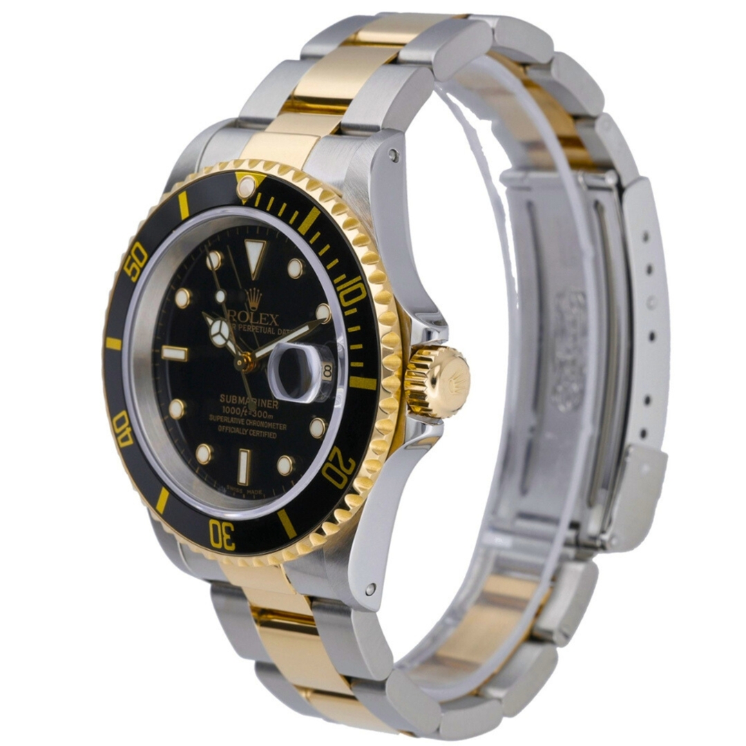 A Rolex Submariner 16613, released in 2000, is a classic example of the brand's legendary craftsmanship and timeless design. This particular model is a bi-metal variant, combining the strength of stainless steel with the luxury of 18ct yellow gold, creating a striking contrast that exudes both durability and elegance. The 40mm case is the perfect size, providing a substantial presence on the wrist without being overwhelming.