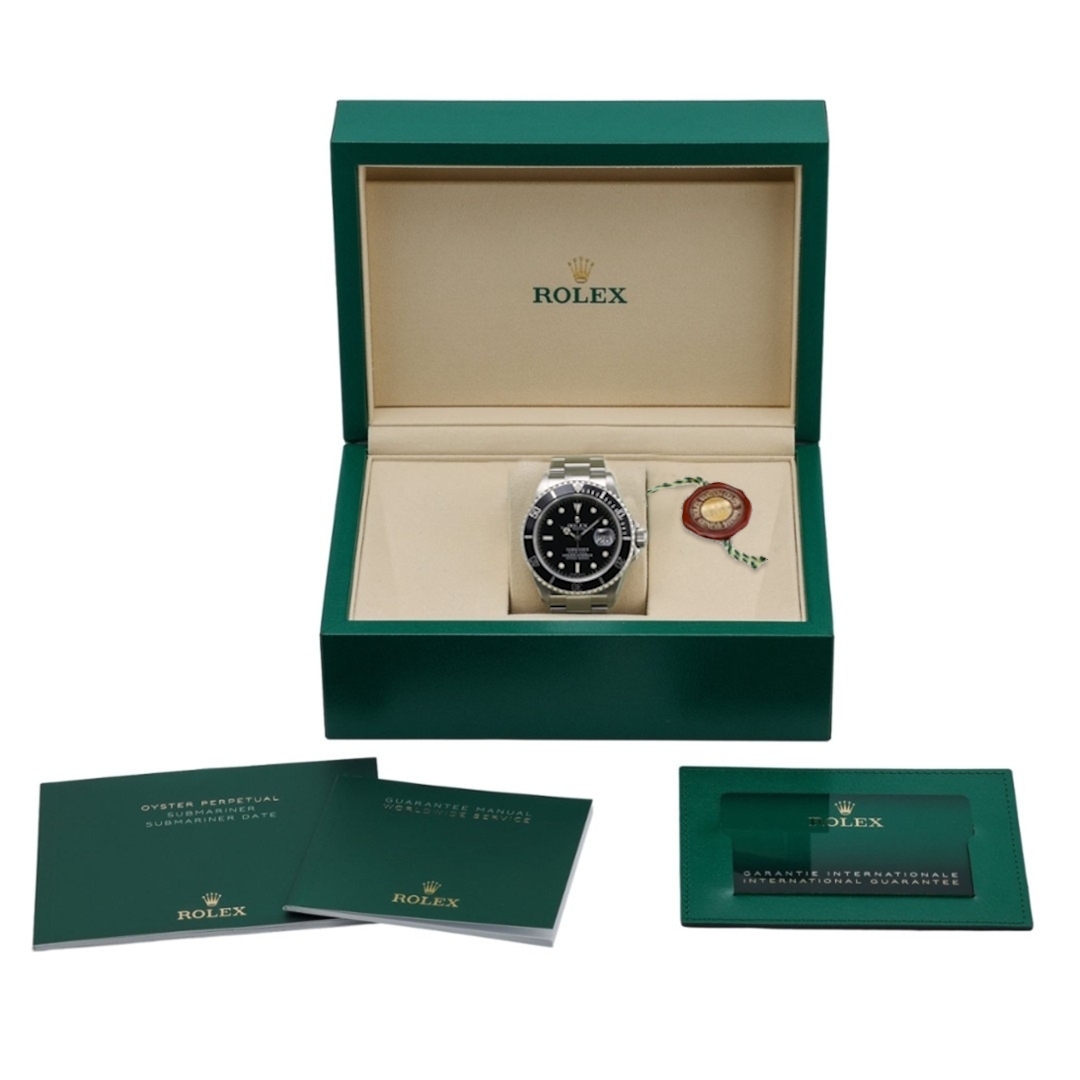 A Rolex Submariner reference 16610 dated to 2025! This is a discontinued Rolex Submariner 16610 (circa 2000s) sold as new old stock, with an original Rolex warranty card dated 2025, activating the manufacturer's warranty until 2030. Presented in stainless steel with a black bezel and matching black dial, representing one of the final generations of the iconic pre-ceramic Submariner.