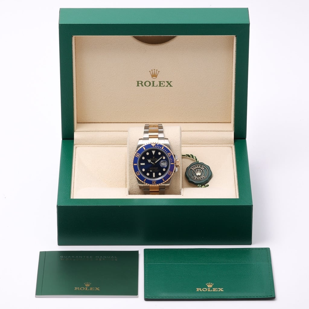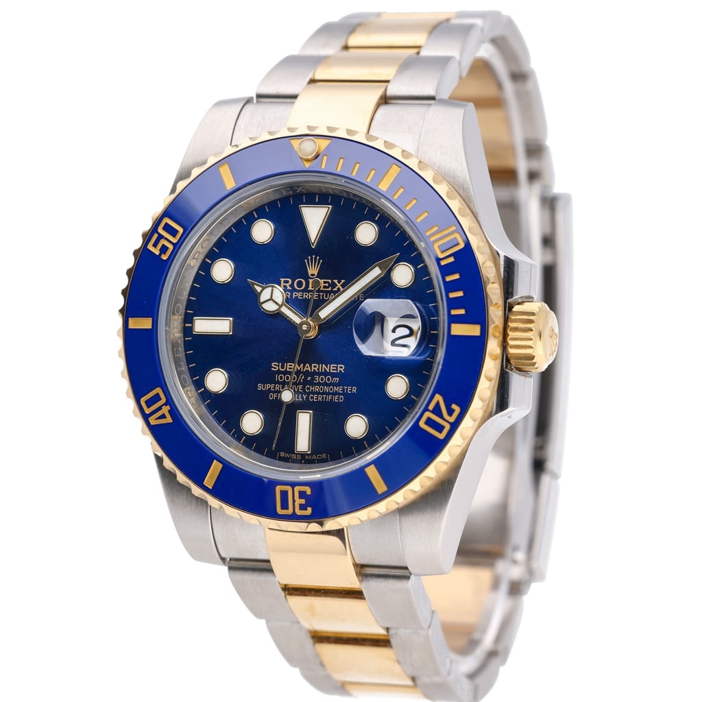 A Rolex Submariner Date 116613LB, presented in stainless steel and 18ct yellow gold, featuring the unmistakable blue dial and matching blue Cerachrom bezel. Commonly referred to as the “Bluesy,” this reference is one of the most recognisable Submariner variants, combining the robustness of a professional dive watch with a more striking, luxury-focused aesthetic.