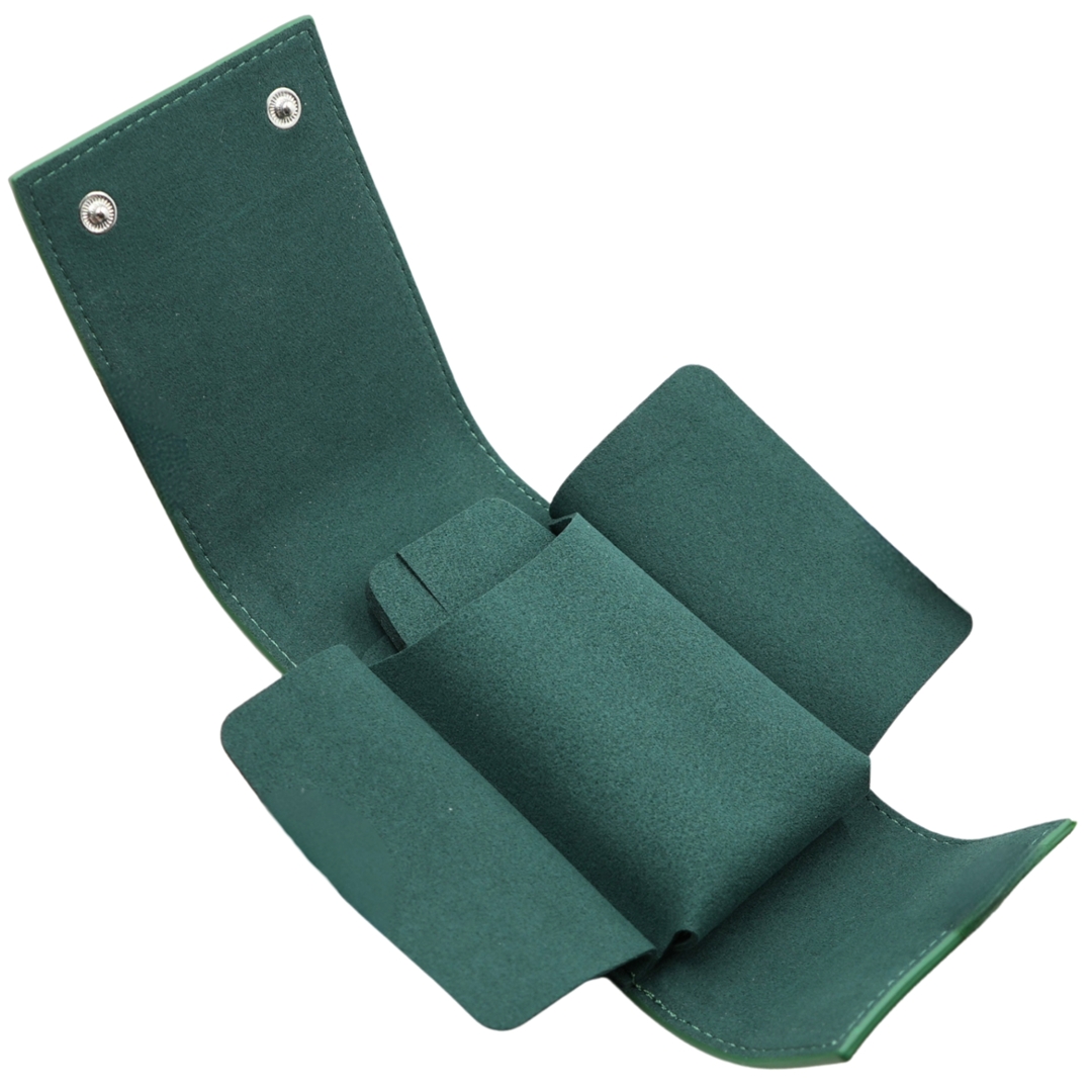 The Rolex travel case is the epitome of luxury and sophistication, designed for the discerning watch enthusiast. Crafted from premium materials, this case is enveloped in a rich, opulent green hue that immediately catches the eye. The front of the case proudly features the iconic Rolex logo, meticulously embossed to exude elegance and class.
